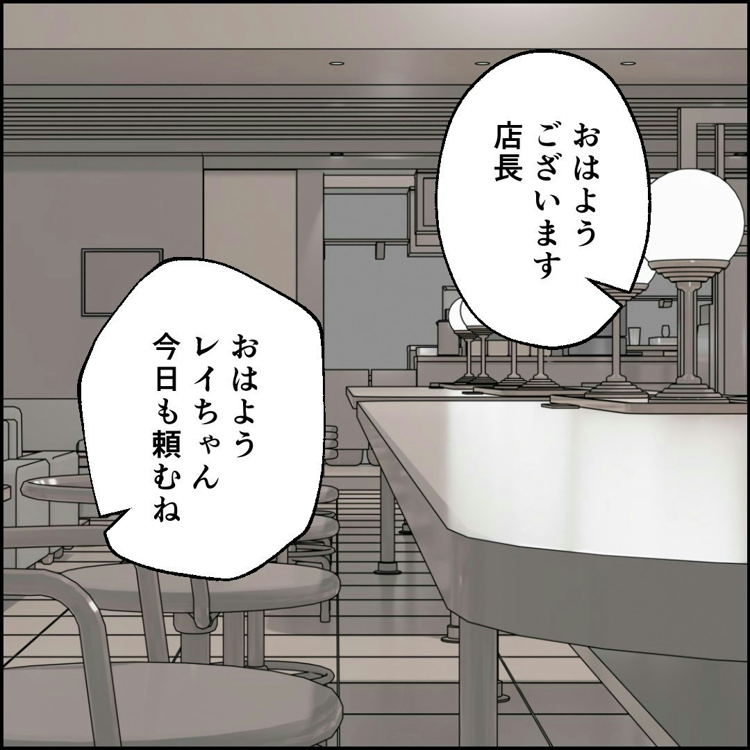 レイと連絡を取り合い、店長がレイの家で張り込みをしていました。すると、そこにあらわれたのは、元カレではなく、バイト仲間の男性だったのです。