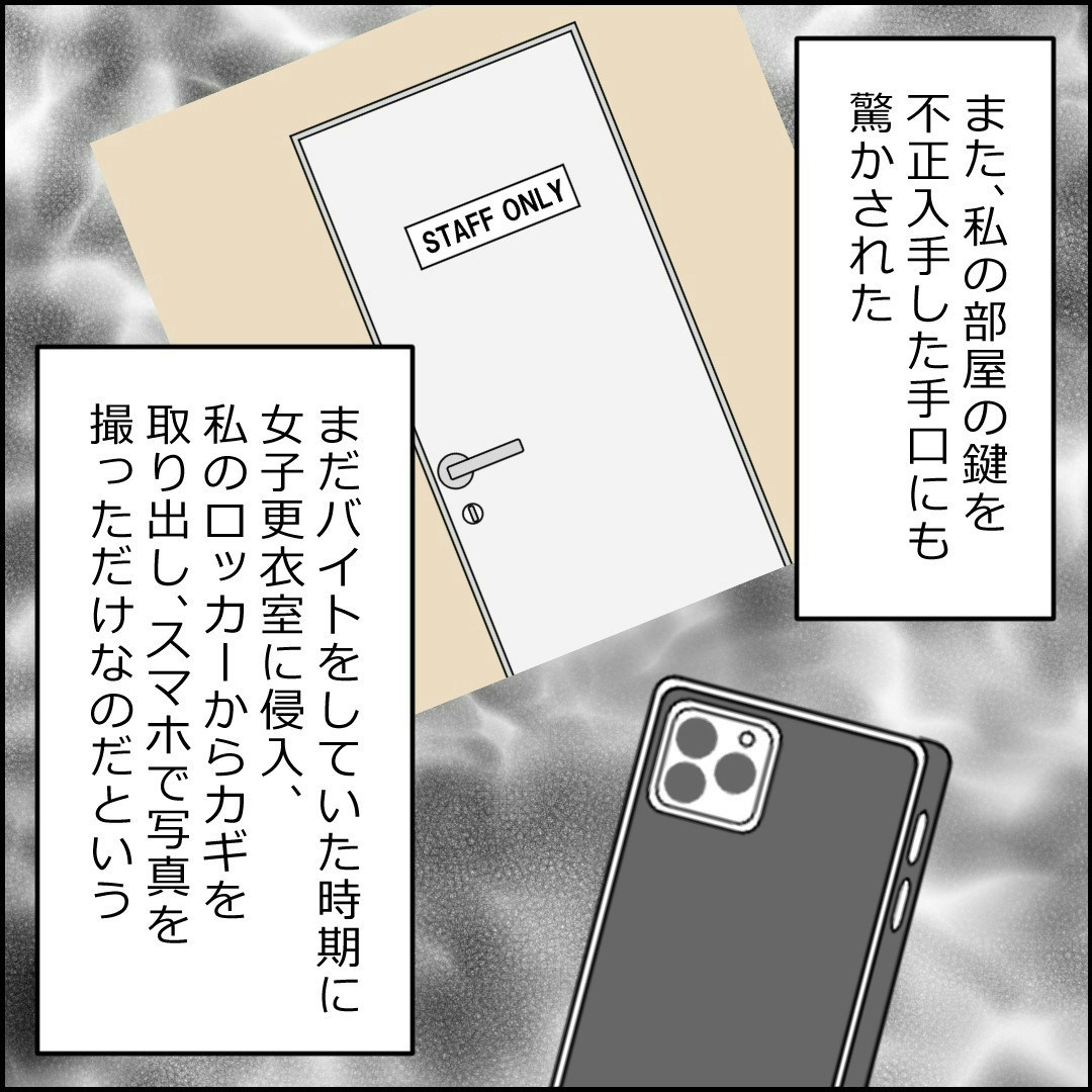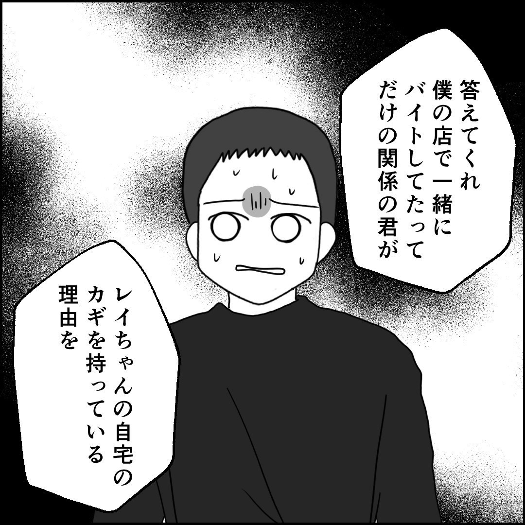 レイの自宅で張り込みをしていた店長と元カレは、侵入してきた犯人と遭遇。犯人は、元バイト仲間のひとりでした。