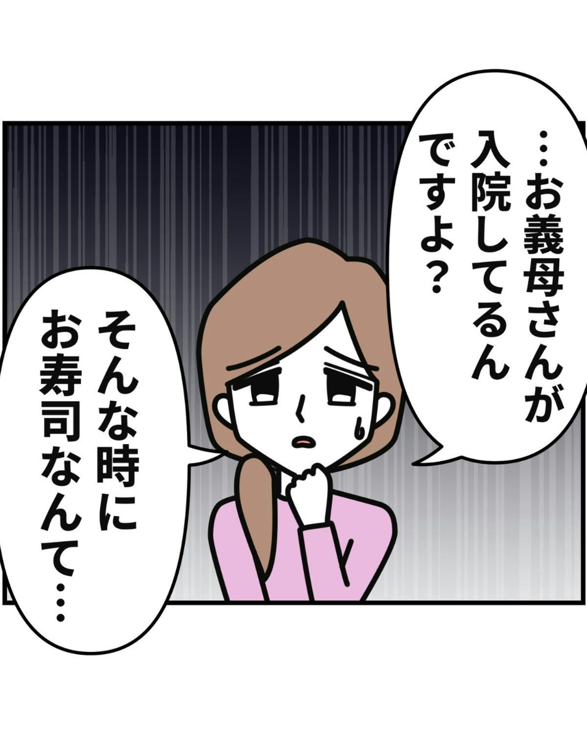 義父から「寿司をとろう」と提案されましたが、みゆきさんは気乗りしません。義母が大変なときに、不謹慎だと感じたのです。
