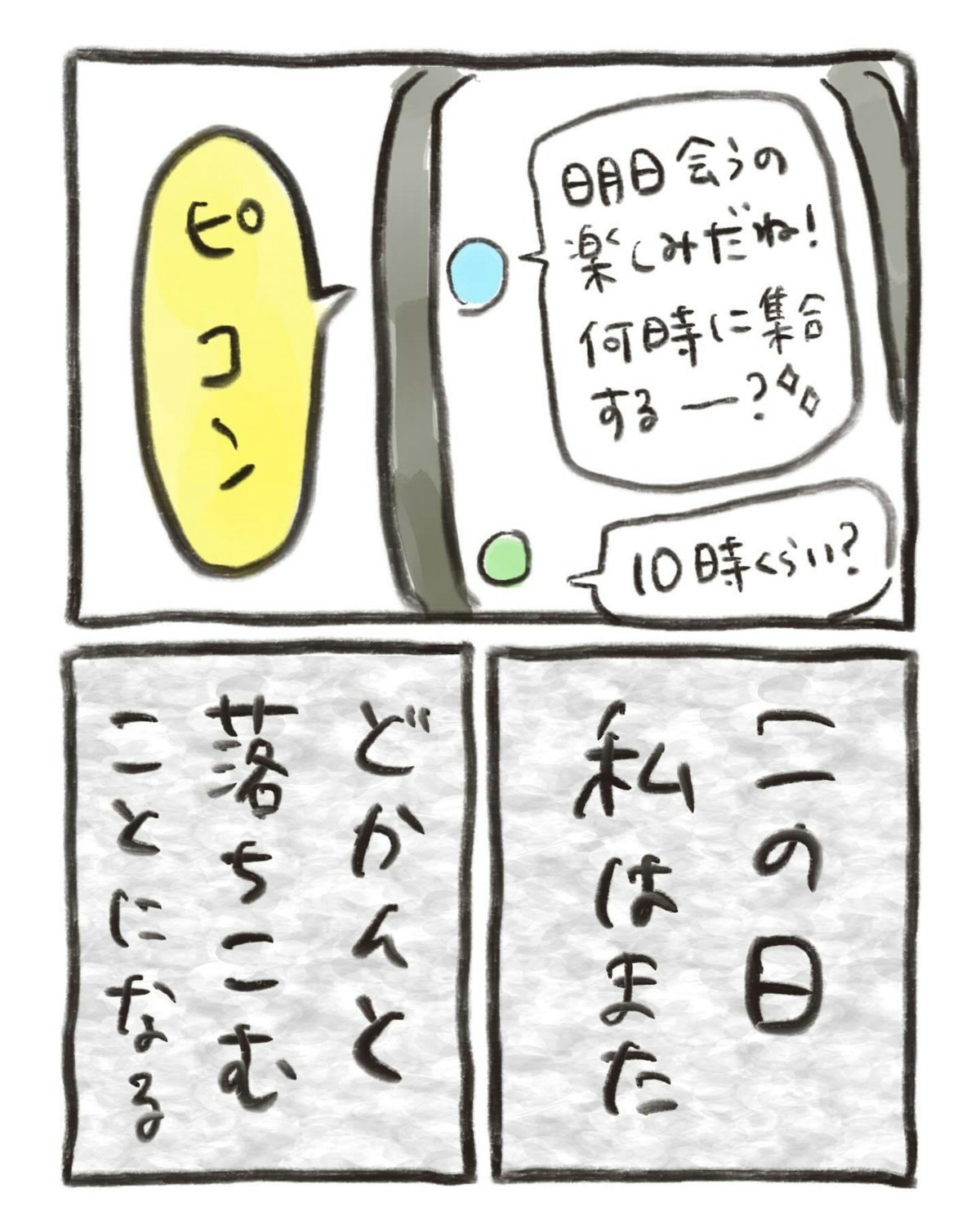 さっきの違和感は「生理」が来たからでした。子どもの話題で盛り上がるなかで、自分はまだ授からないことがはっきりとわかり気持ちが沈みはじめます。