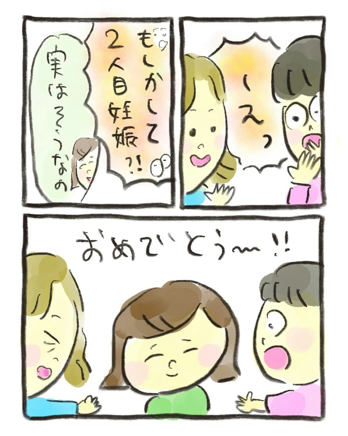 友人のうちの1人は、2人目を妊娠中。おたんこ助産師さんは驚きながらも「おめでとう」と声をかけました。