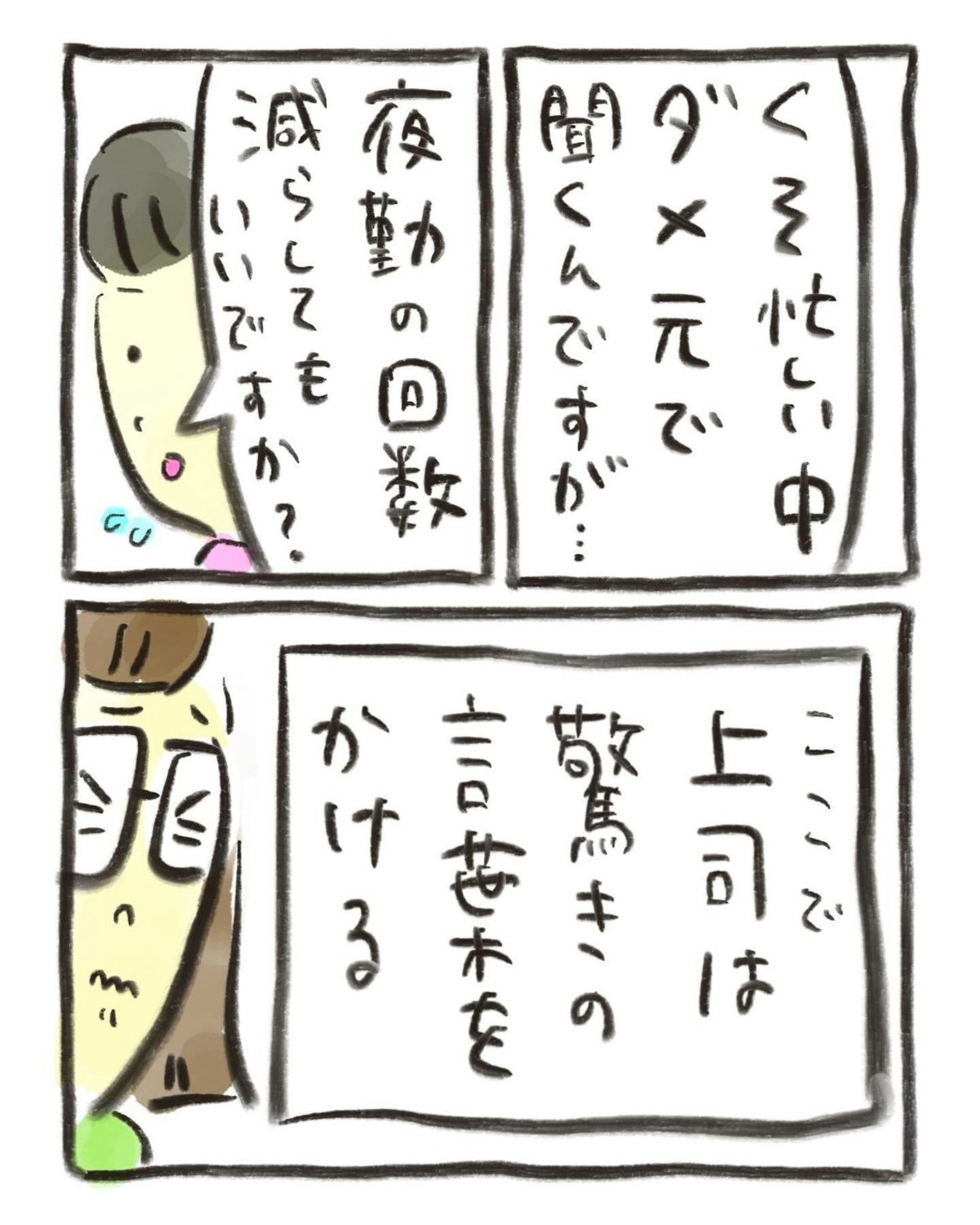 コロナ禍のなか、病院勤めをしているおたんこ助産師さんは、妊活のために「夜勤を減らしてほしい」と上司に相談。すると、上司は「何とかなる」と言って承諾してくれました。おたんこ助産師さんは、上司の妊活に理解を示したその理由を聞いて感激してしまいます。