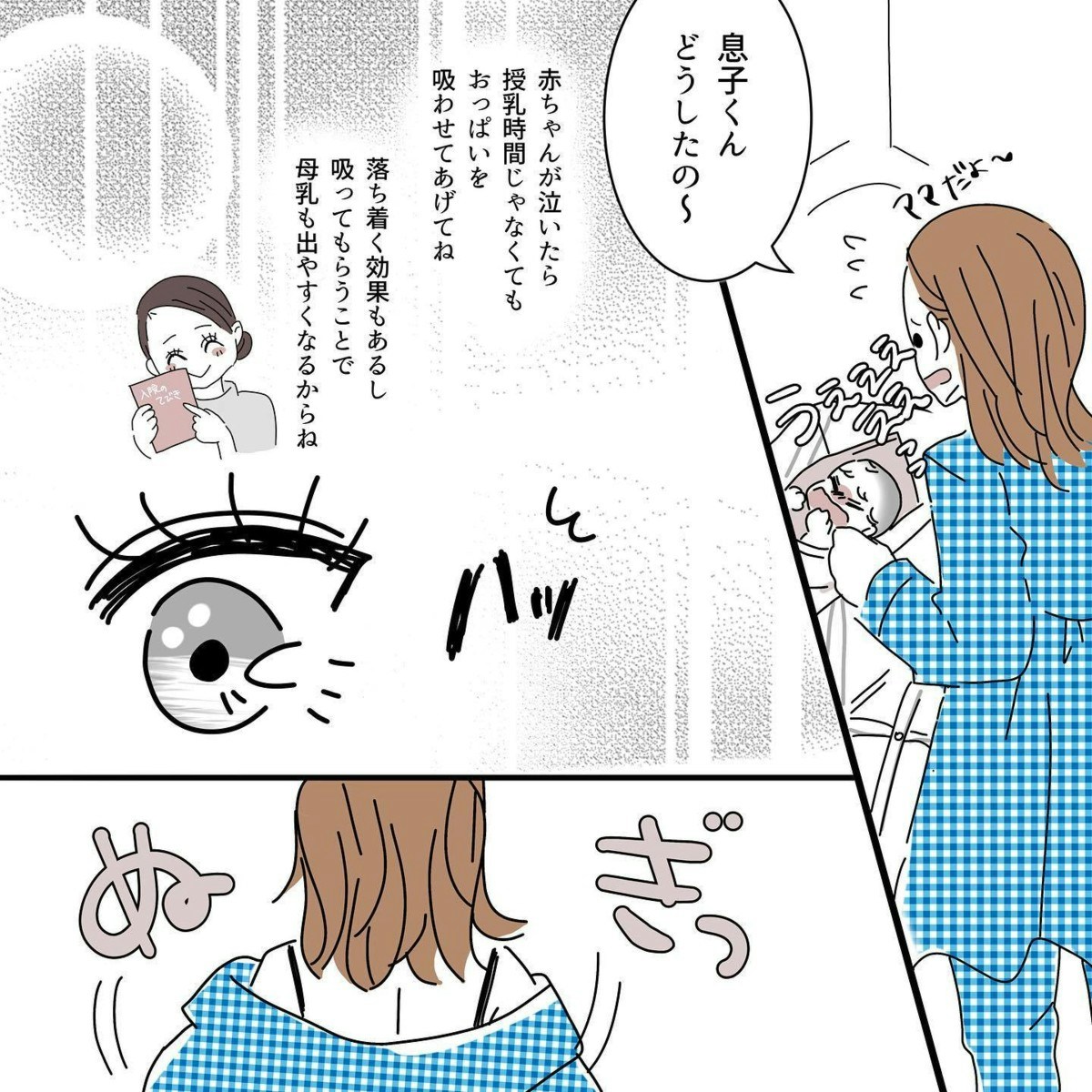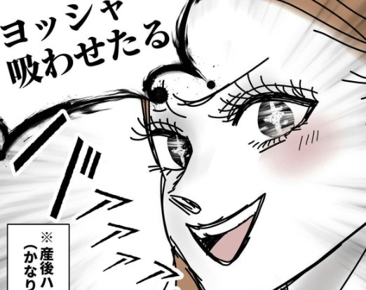 助産師さんの言葉を思い出し、意気揚々と授乳を始めることにしたタニシさん。