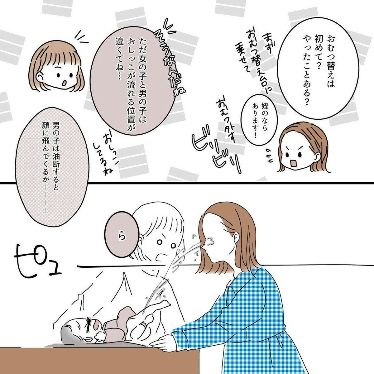 男の子のおむつ替えであるあるとも言われているおしっこが顔にかかるという事態を早々に体験したタニシさん。思い出したら笑えるエピソードだと思いますが、初めてかけられたときはびっくりしますよね。