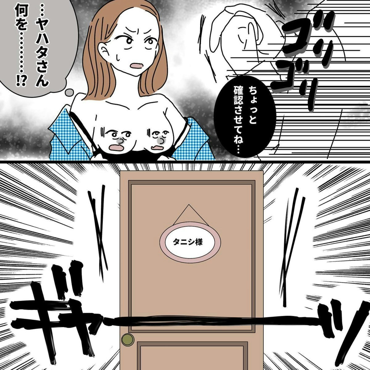 タニシさんの話をきいた助産師さんは、タニシさんのおっぱいを見てくれることに。助産師さんは赤ちゃんを取り上げるだけでなく、母乳のことやおっぱいのケアのこともよく知っているのです。