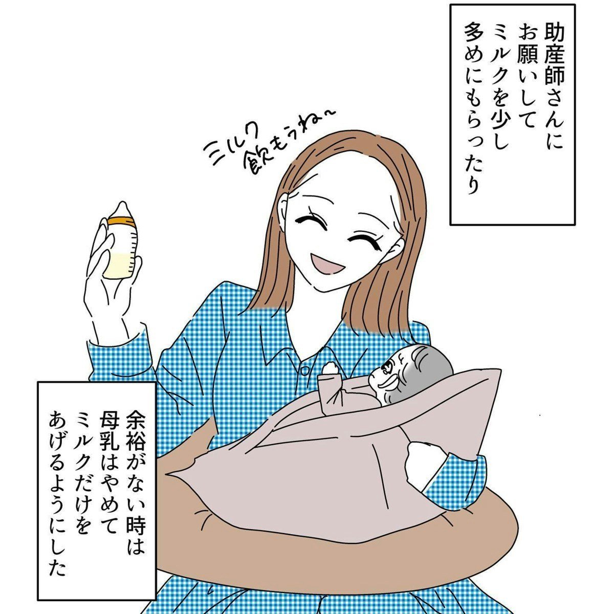 産後の入院中から始まった授乳は、なかなかうまくいかず、焦りや落ち込みを感じる日々だったそうです。退院後に母乳が出るようになったものの、母乳だけのときに赤ちゃんが吐いてしまったことをきっかけに、授乳を見直すことになります。赤ちゃんの吐き戻しは珍しいことではありませんが、当時のタニシさんには、そのでき事を気持ちの余裕をもって受け止めることが難しかったといいます。悩んだ末にミルクへ切り替えたことで、少しずつ前向きに育児と向き合えるようになったそうです。