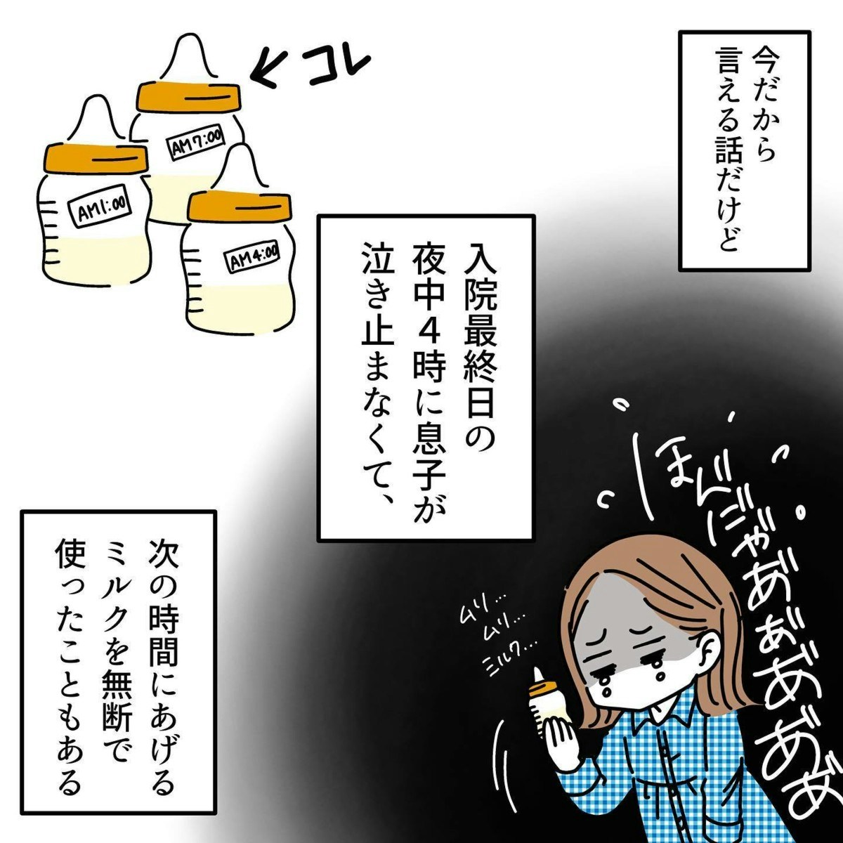 母乳が全く出ないことに落ち込むタニシさんに声をかけた助産師さんは、話をきいてくれました。そしてタニシさんのおっぱいを手で確認すると、「全く張ってないから入院中は間違いなく出ないと思う」と断言したのでした。