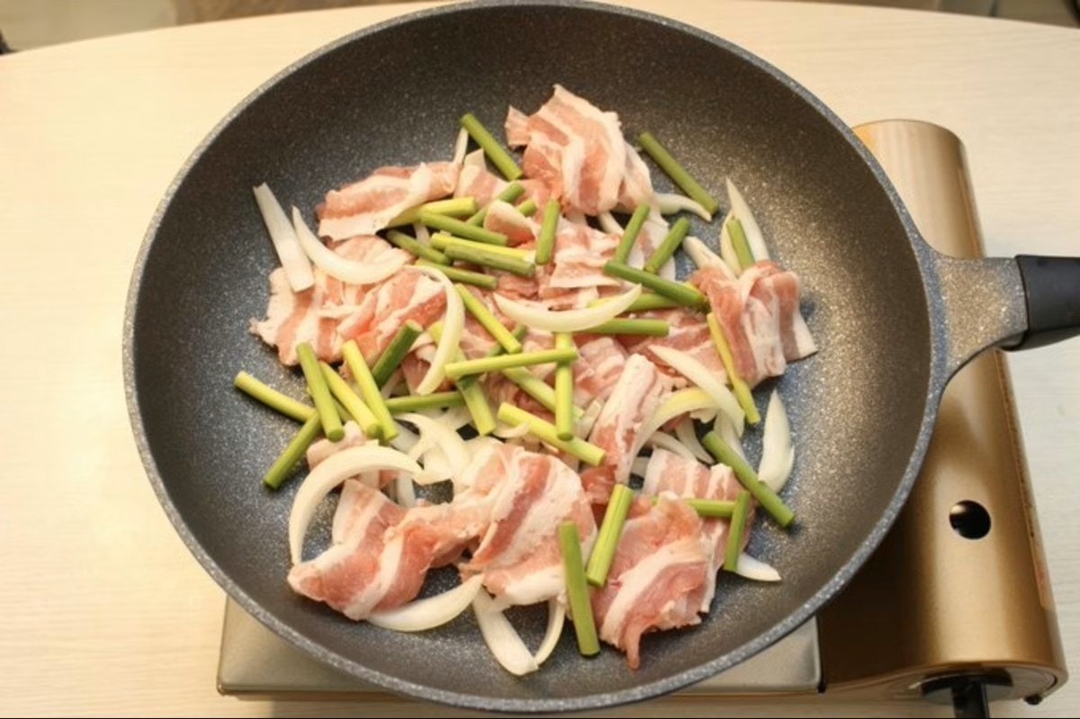 にんにくの芽4本を火が入るまで炒め、