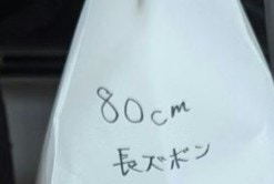 「80cm長ズボンたくさんある買うな」と紙袋に書かれた自分宛のメモ。こうすることで次の衣替えが近づいた際に、買い過ぎを防ぐことができます。頼れるのは過去の私!ですね。段ボールや紙袋なら直接書き残すことができ、衣装ケースなどは付箋などを貼ると在庫管理が簡単◎