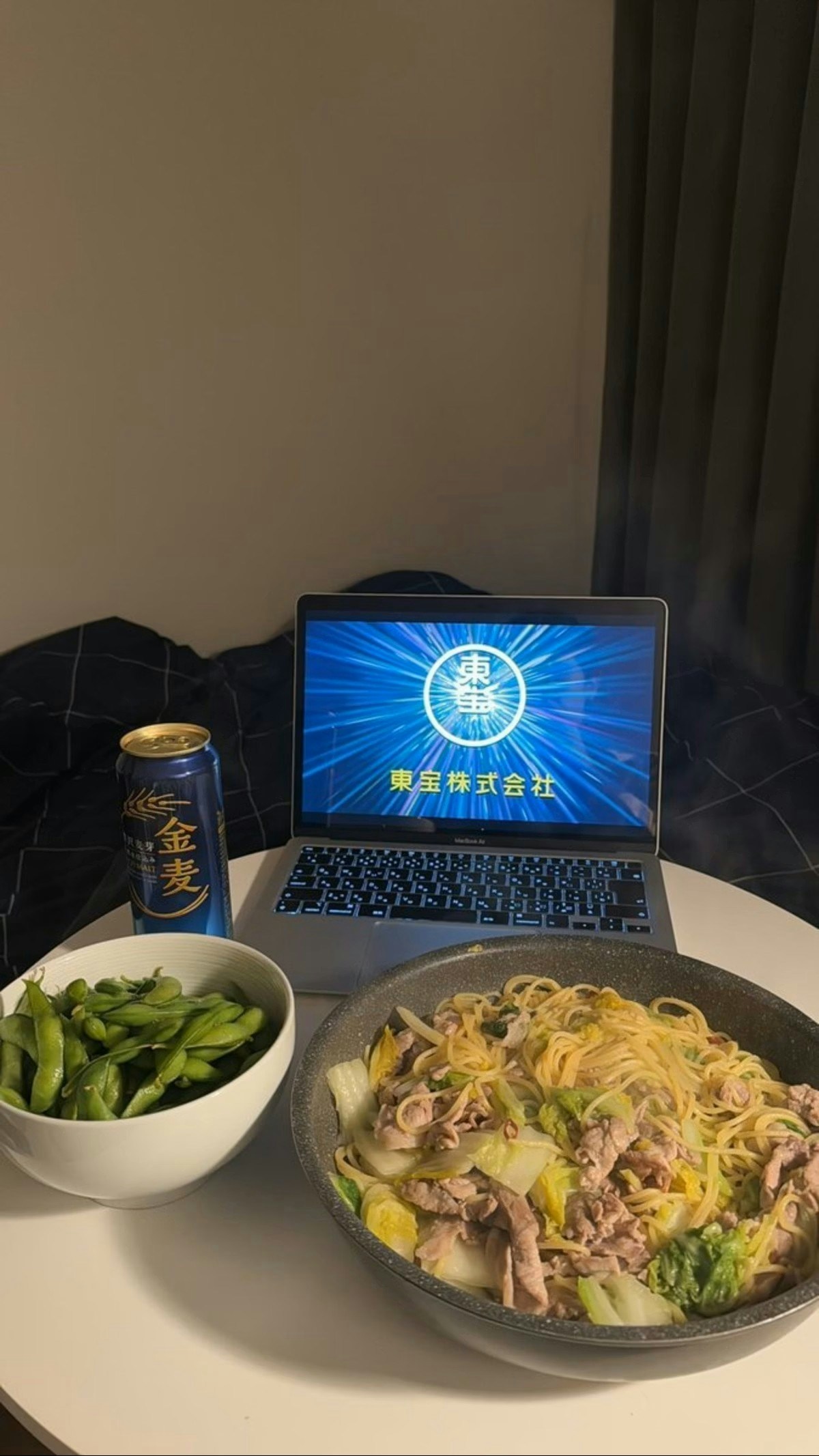お写真を見た瞬間に、すぐにでも同じようにやりたくなってしまいました…。食事にビールと枝豆。まさに至福の時間です。映画を見ながらこういった食事セットは、自宅しか味わえません…。冒頭の会社クレジットが表示されると、「今から始まるんだ」とわくわくしてきますよね。