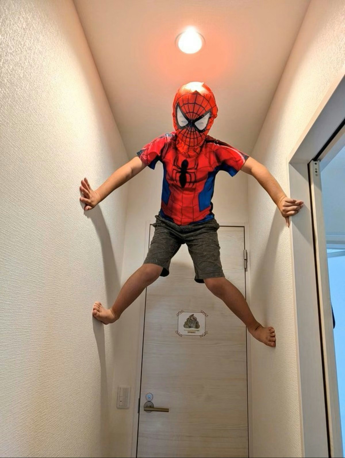 「やっとスパイダーまんになれた✨」という息子8才、いつからそこに?