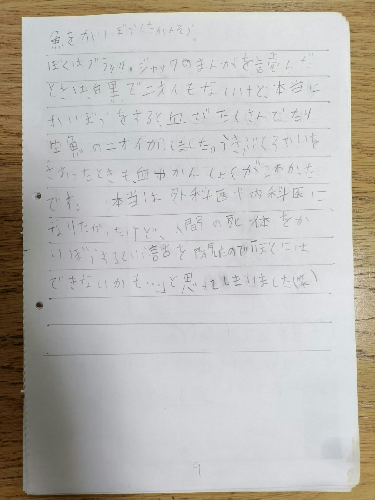魚は手術ができるのか、書籍では答えが見つからなかったため専門家にアドバイスを求め、質問したり手紙を書いたりした息子さん。獣医さんや水族館の飼育員さんなど、それぞれの視点から話を聞くことができたようです。こんなに行動できることが素晴らしいですね。