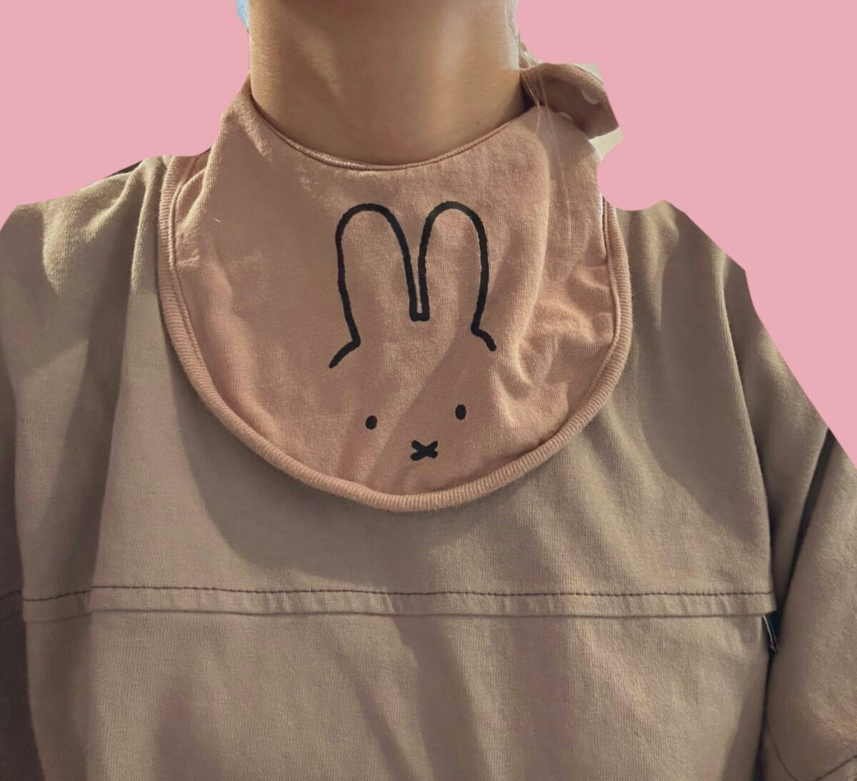 娘さんはスタイを拒否…仕方なく「じゃあいいよ!」と言い、まう〜さんは代わりに付けて見せたそう。娘さんが「やっぱり付ける!」となるかと思いきや、そうはならず、忘れたまま職場にたどり着いてしまったまう~さん。やらかしたエピソードではあるものの、かわいらしいスタイと服の色が合っていて、ちょっとおしゃれに見えてしまうのは筆者だけでしょうか。