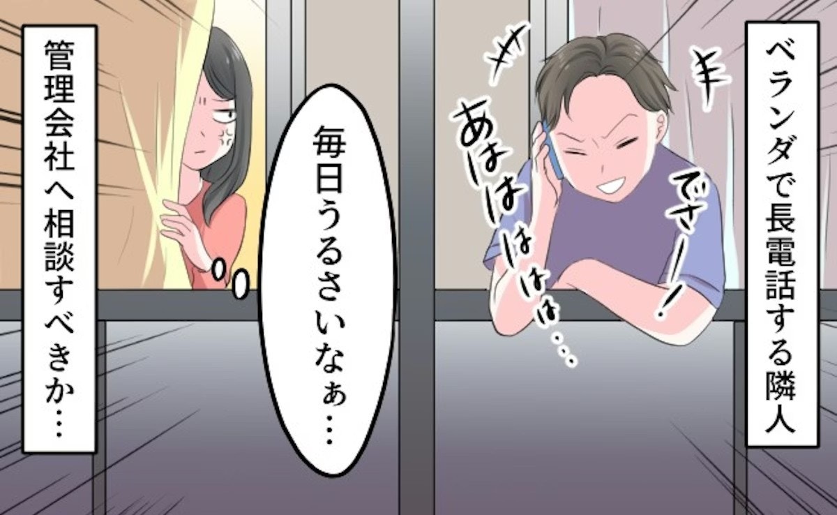 投稿者さんいわく隣人には2歳くらいの小さな子どもがいるそうなので、家族に配慮してベランダで電話をしているのでしょう。とはいえ、周囲の人に迷惑をかけてよい理由にはなりませんよね。