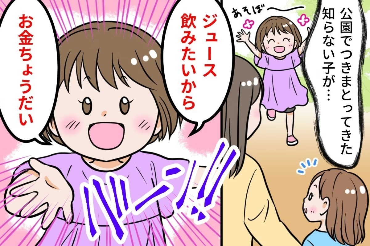 公園で会った子ども同士が仲良くしていると親はうれしいもの。しかし、その子どもが「お金ちょうだい」と言ったので投稿者さんは驚いてしまいました。父親と姉と一緒に来ていたのに、その子だけ投稿者さんと娘に付きまとっていたといいます。
