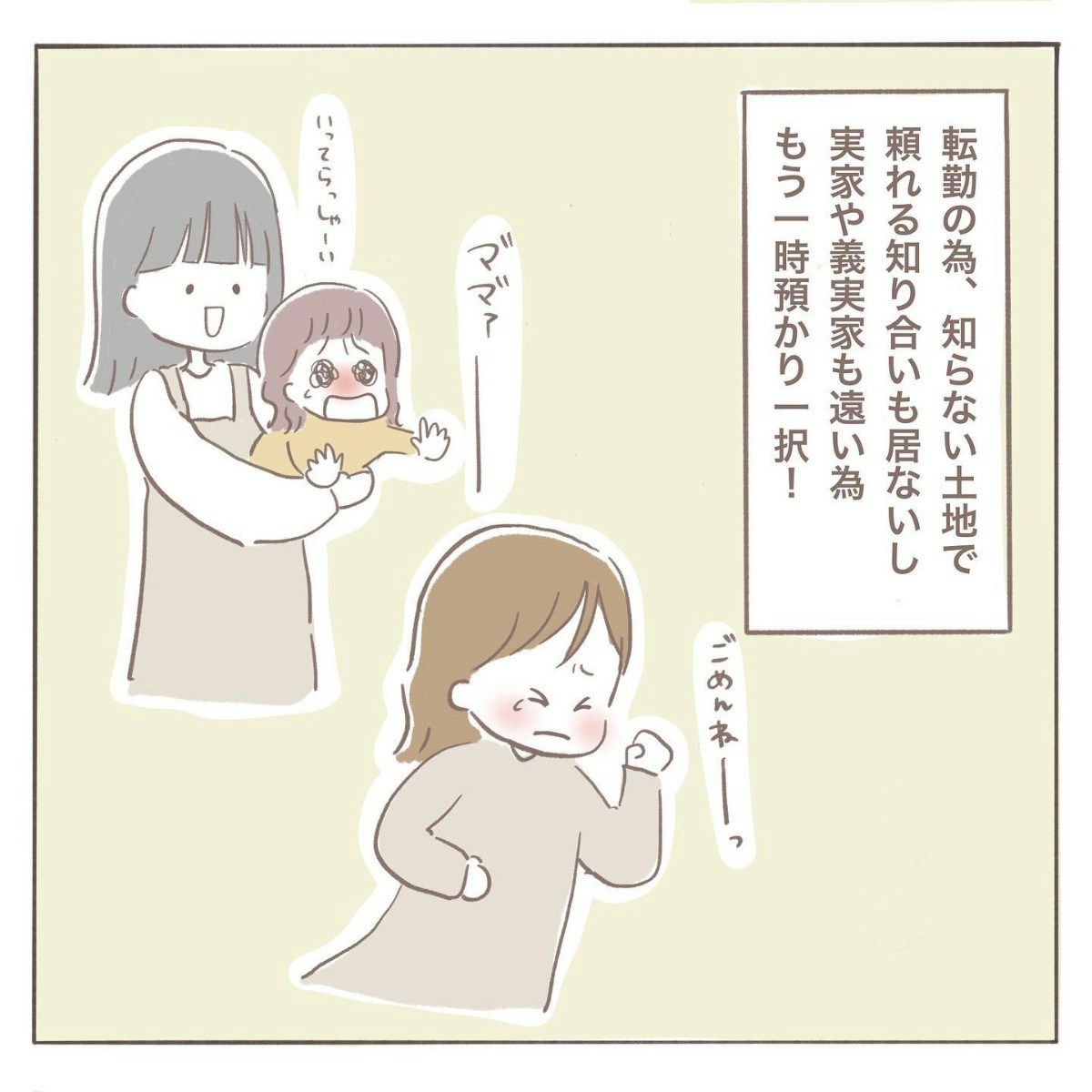 不妊治療専門の病院では「子連れ禁止」が当たり前のようです。周りに頼れる人がいないcoromoさんは、一時預かりに頼るしかありません。ママと離れるのが寂しくて泣く娘を背に、coromoさんはクリニックへ向かいます。