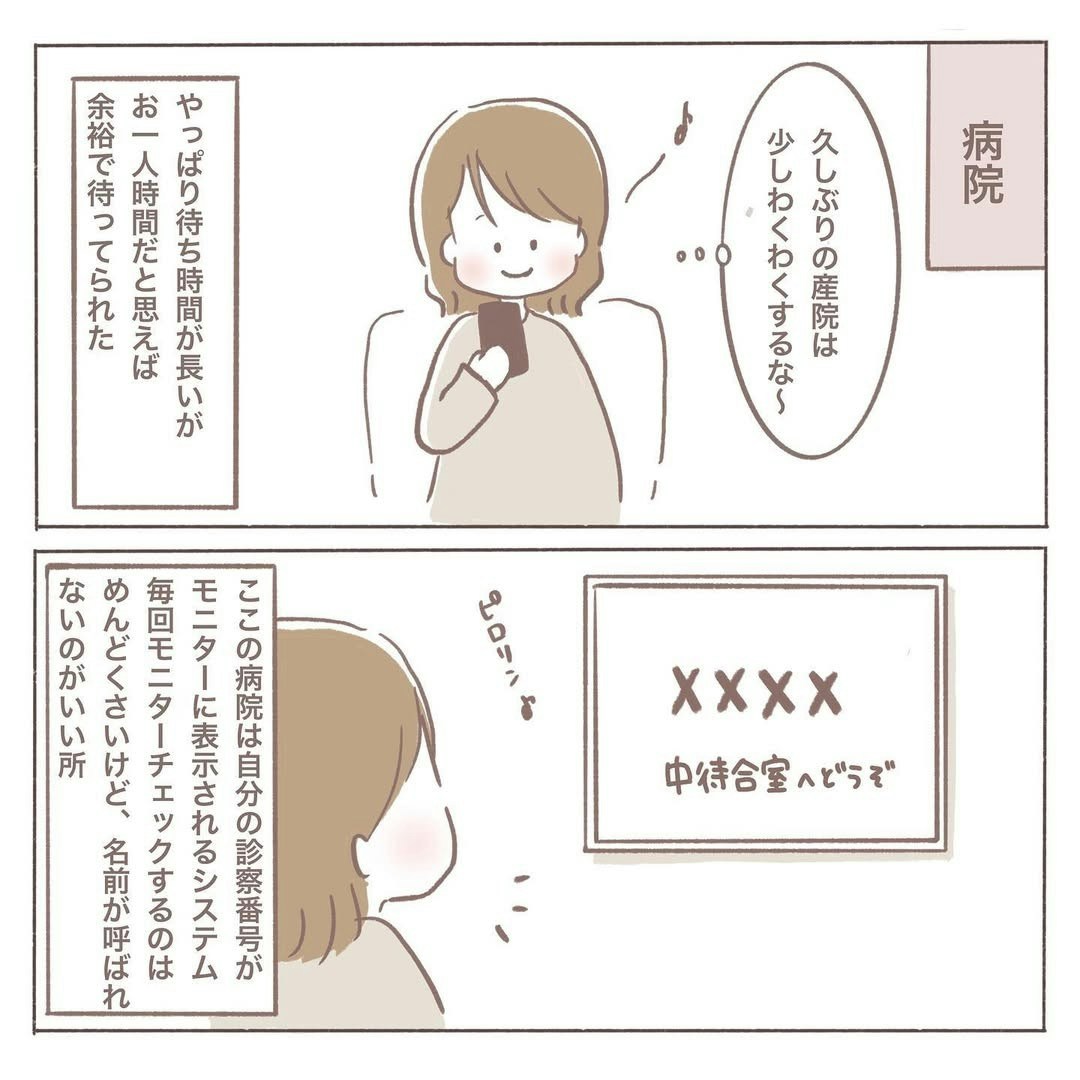 久しぶりの産院に、思わずわくわくしてしまうcoromoさん。待ち時間は長かったものの、今日は子連れではないため、心にも時間にも余裕を持って過ごせています。