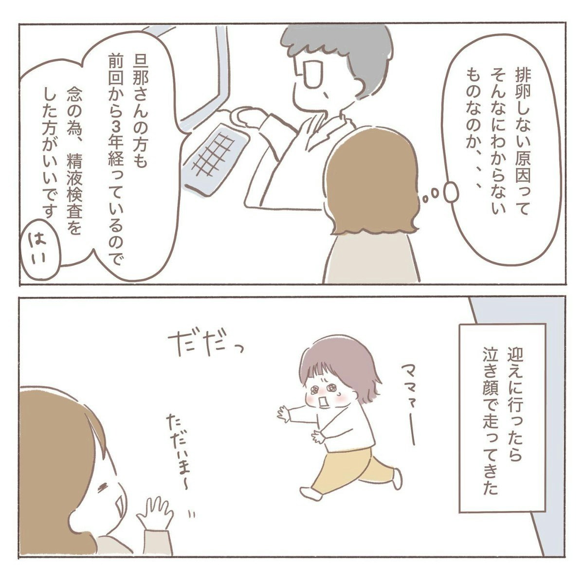 排卵していないと知り、ショックを受けるcoromoさん。タイミング法で妊娠できた1人目のときとは、状況が大きく違うようです。
