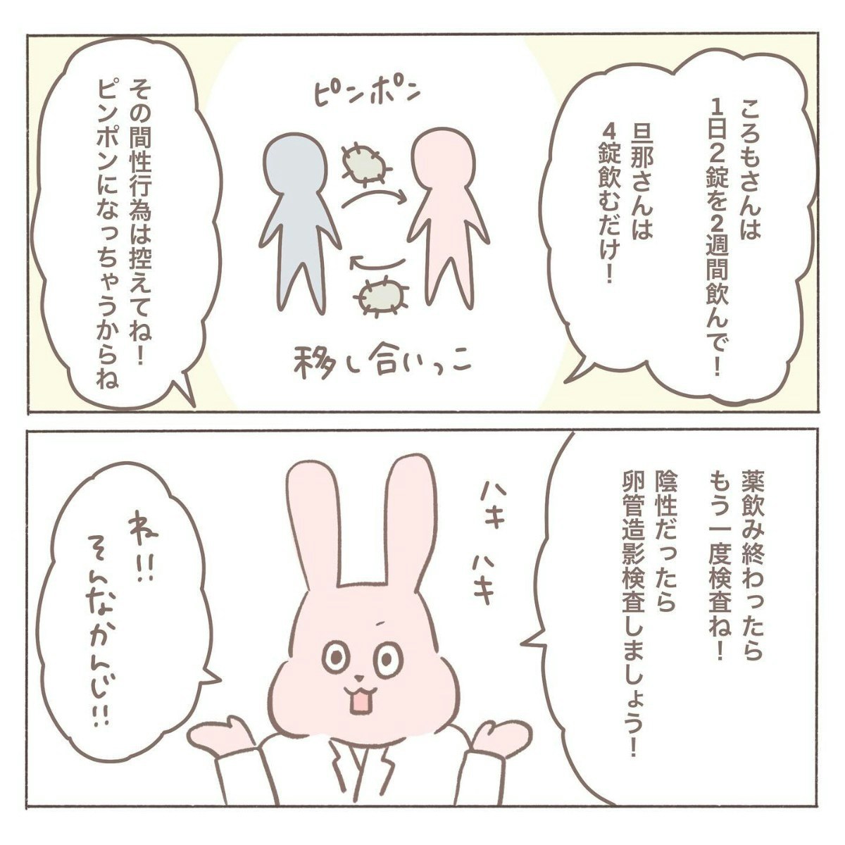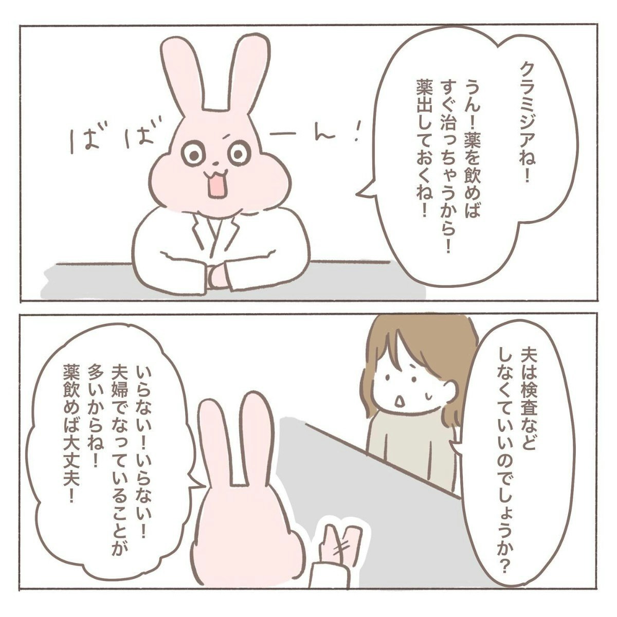深刻に考えていたcoromoさんでしたが、先生は淡々と説明し、夫の検査もいらないと言います。薬をのんで陰性がでたら次のステップに進めるようです。