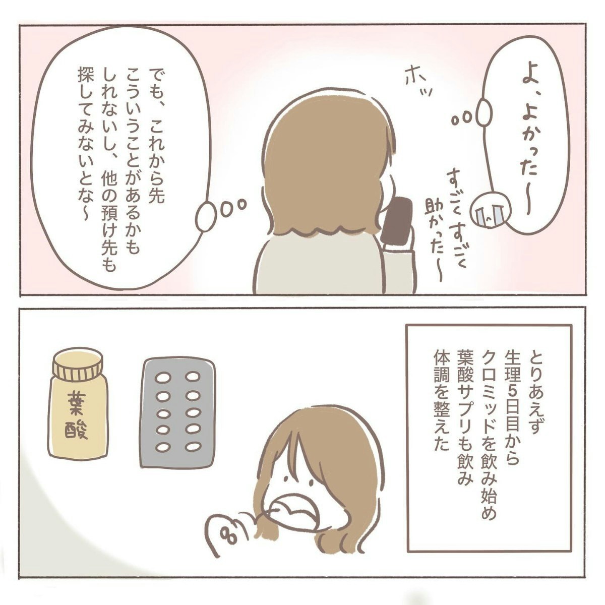 不妊治療は先の予定が読めないため、娘さんを預ける日程もなかなか定まりません。そのうえ予約枠が埋まってしまうと預け先がなくなるという問題もあり、coromoさんの不安は尽きません。「このままでは立ち行かなくなるかもしれない…」と感じた coromoさんは、他の預け先も検討しなければと強く思うのでした。
