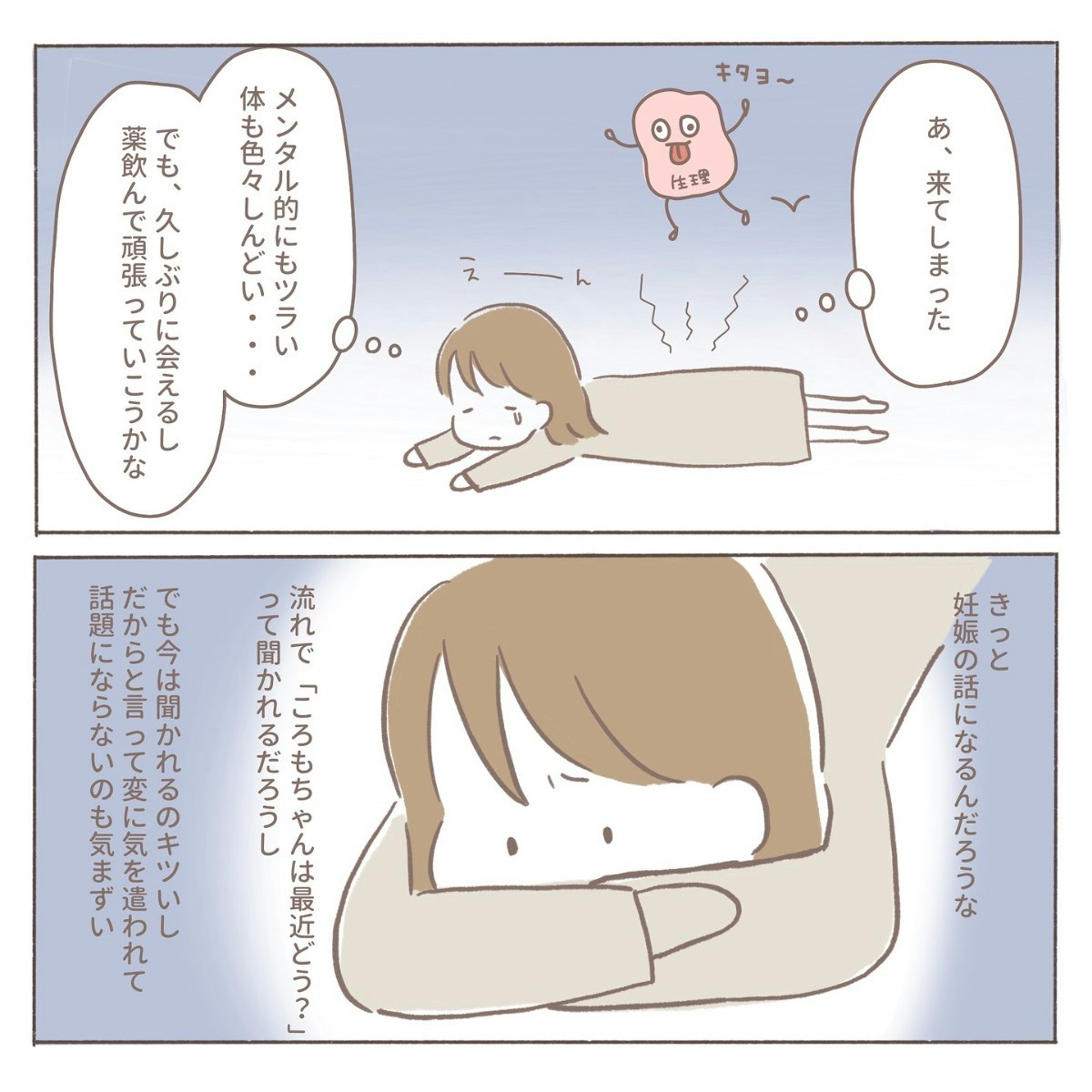 複雑な思いを抱えている最中に、ちょうど生理が来てしまいました。心も体も揺れている時期で、メンタル的にもかなり弱っているのが自分でも分かります。