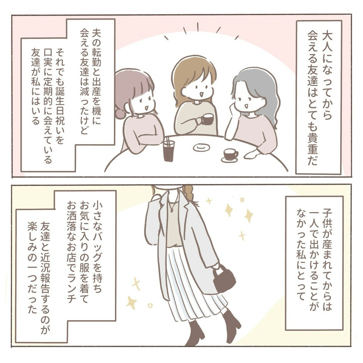 子どもが生まれてからは、なかなか自分の時間を持つことができませんよね。そんな忙しい毎日の中でも、友人と過ごすひとときは特別で、coromoさんにとっても大切な楽しみの一つでした。──けれど、その日を境に、胸の奥に小さなざわつきが生まれる出来事が起きたのです。