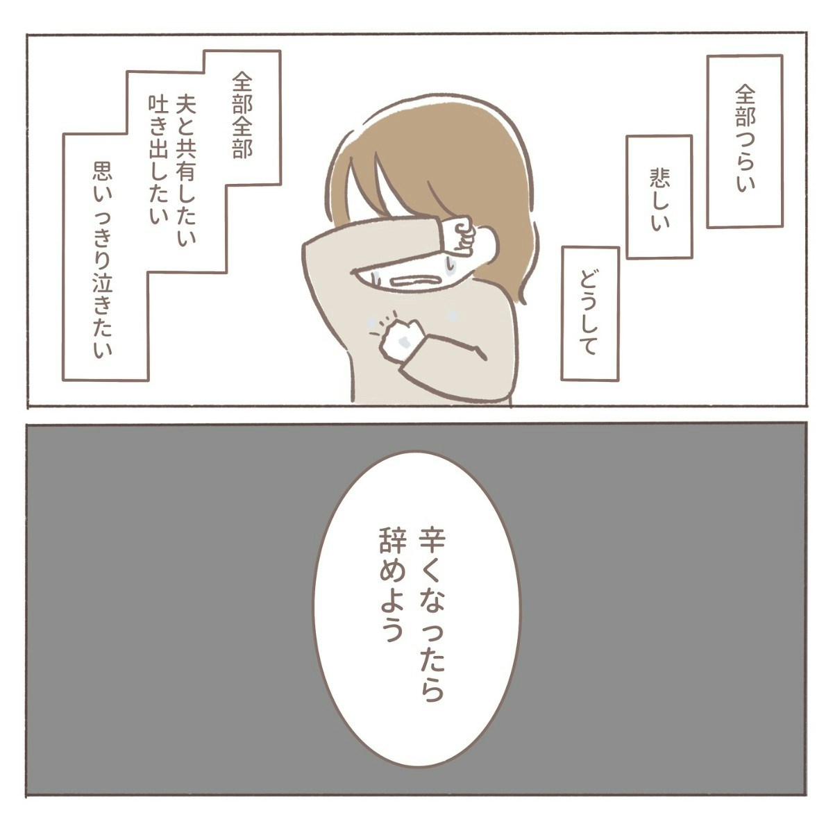 生理がきてしまったことで、coromoさんのメンタルはすっかりボロボロに。そこへ友人との出来事も重なり、心はもう限界に近い状態でした。本当なら、こんな時こそ夫に素直に気持ちを吐き出せたらいいのに...。