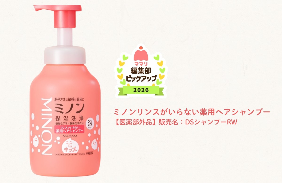 「ミノンリンスがいらない薬用ヘアシャンプー」は、ポンプを押すだけで泡が出るタイプ。泡立てる必要がないので、洗髪に慣れていない子どもでも使いやすいのが特長です。