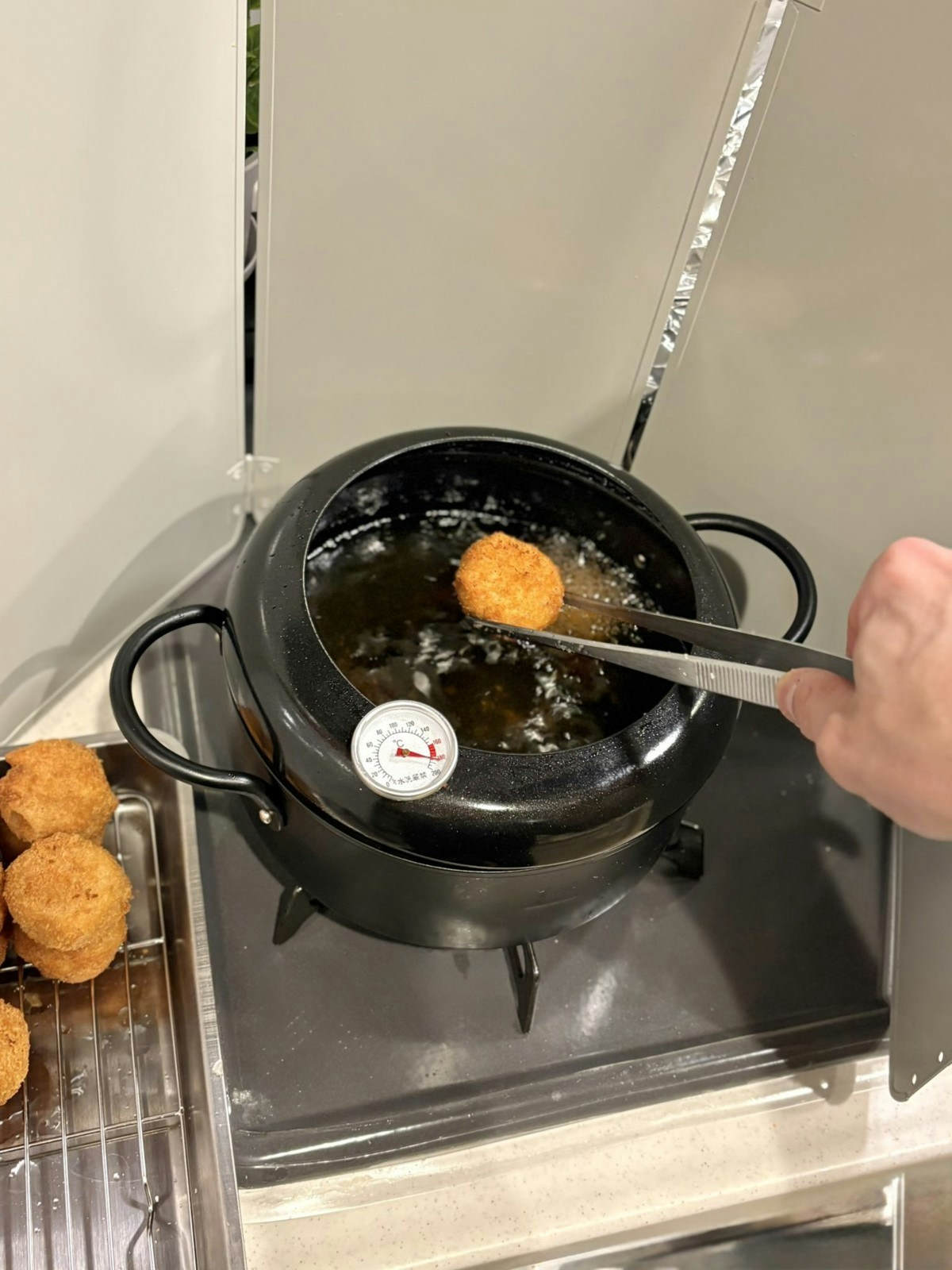 このテクニックの素晴らしいところは、揚げ担当が『はい!揚がったよ!食べて!』ってタイミングで一緒に座って食べられるところ。