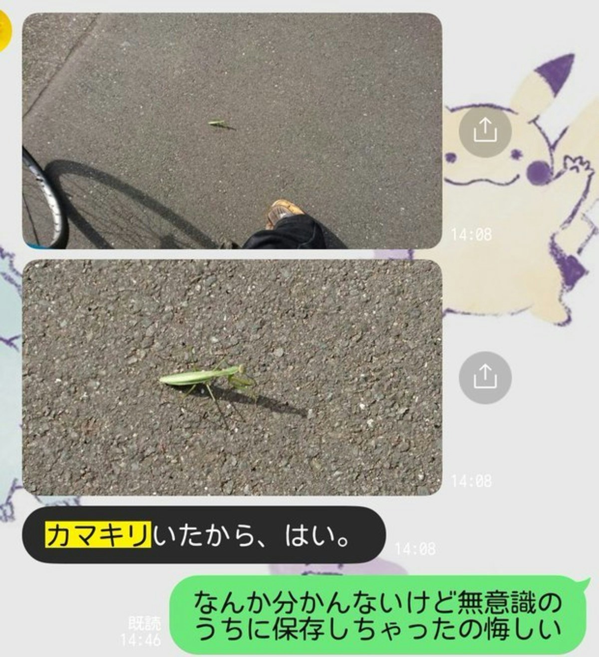 夫がカマキリの画像送ってきたことがあった。付き合ってから
