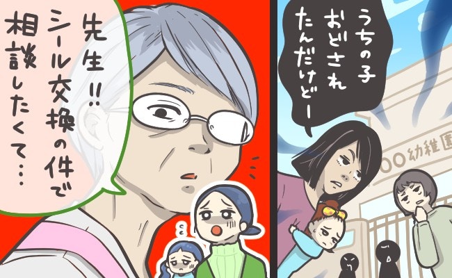 「加藤先生…実は、美緒さんとのシール交換の件で、私たち親子が美緒さんを"おどした"というお話が出ているようで……」