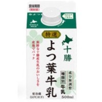 北海道産生乳を使用した「特選よつ葉牛乳」は、コクがありながらもすっきりとした飲み口。金色の「特選」ラベルが目印です。