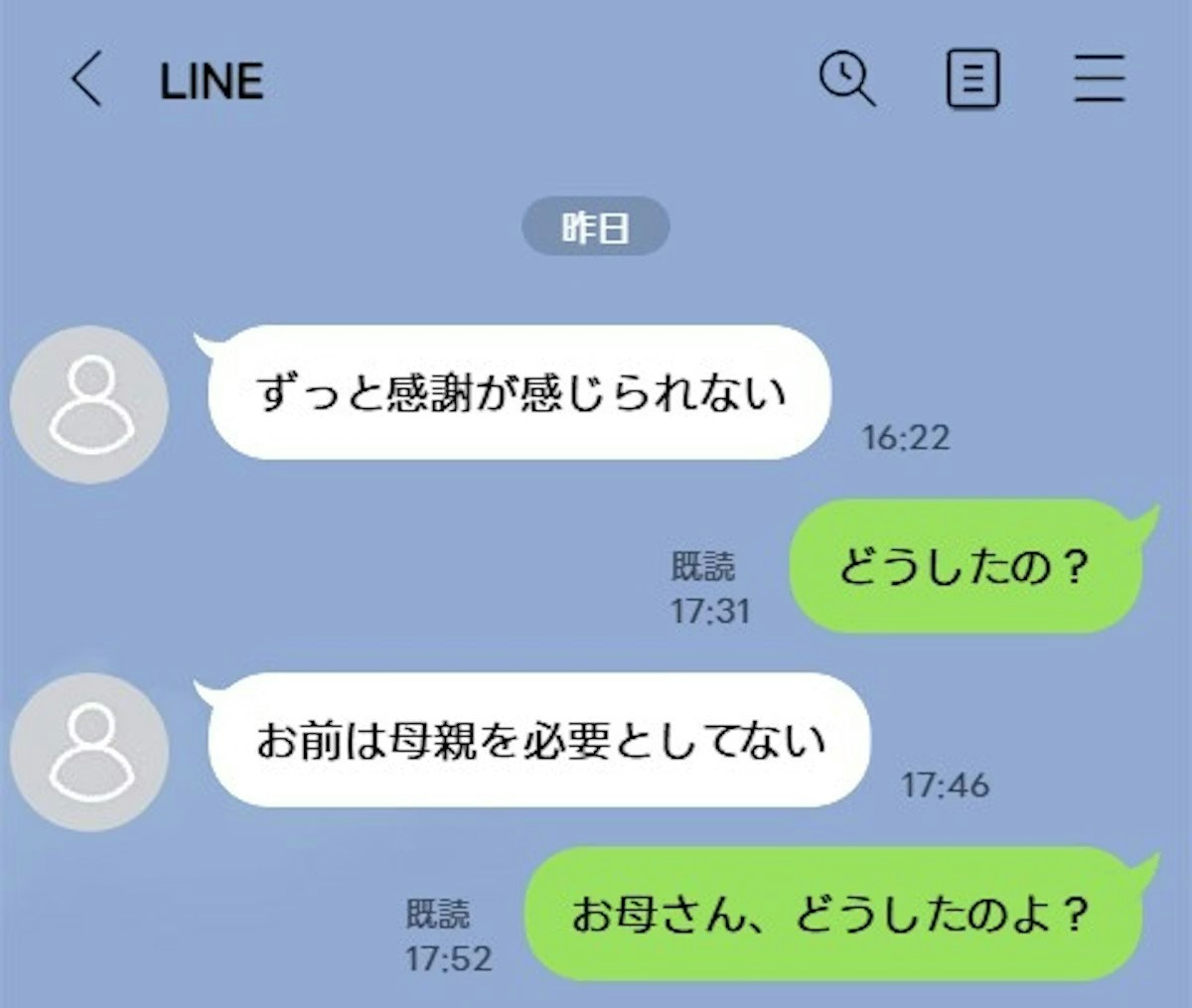 投稿者さんとしてはこれほどまでに強い言葉を浴びせられるきっかけが何なのか分からずとても戸惑っているようです。今後の実母との関係もどのようにしていけばよいか、投稿者さんは悩んでいます。