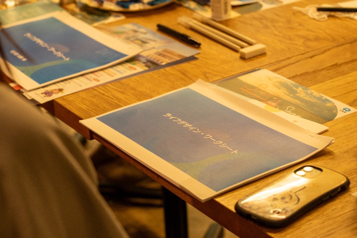 「こどもが3人生まれる」「起業する」「地域コミュニティに参加する」などの設定が記載された『ライフデザインカード』から数枚を選び、その設定をもとにプランニングを進めていきます。