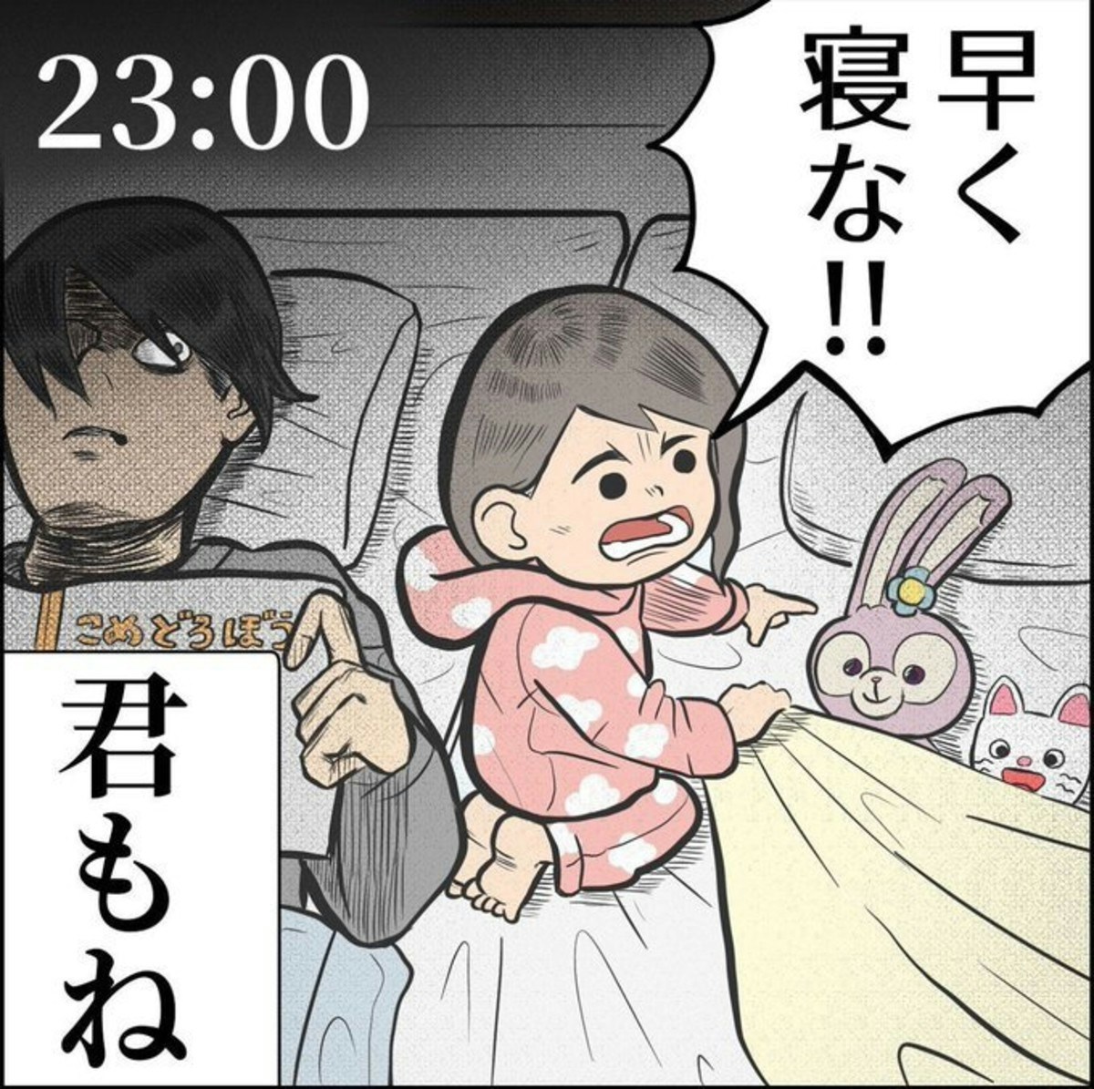 23時とは思えないキレのある指導…しかも容赦なし。その様子を見ていたパパが、間髪入れずに「お前もな」とツッコミ。23時のカオス感がひしひしと伝わります。