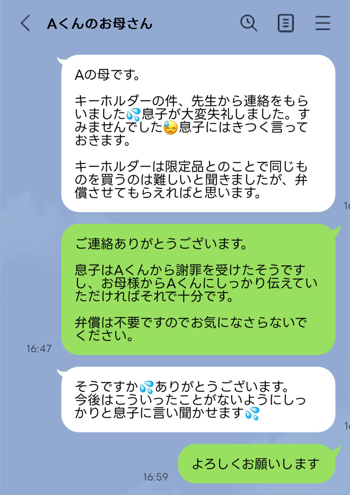 凄く親しいママ友でも謝罪文では