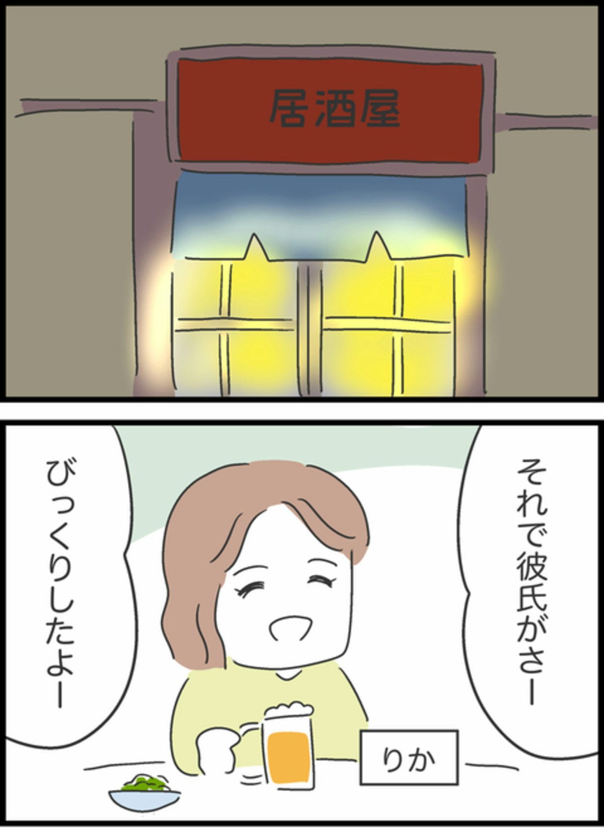 居酒屋で盛り上がっている様子の2人。りかの話にすみれも笑い、とても楽しい時間を過ごしているように見えますね。