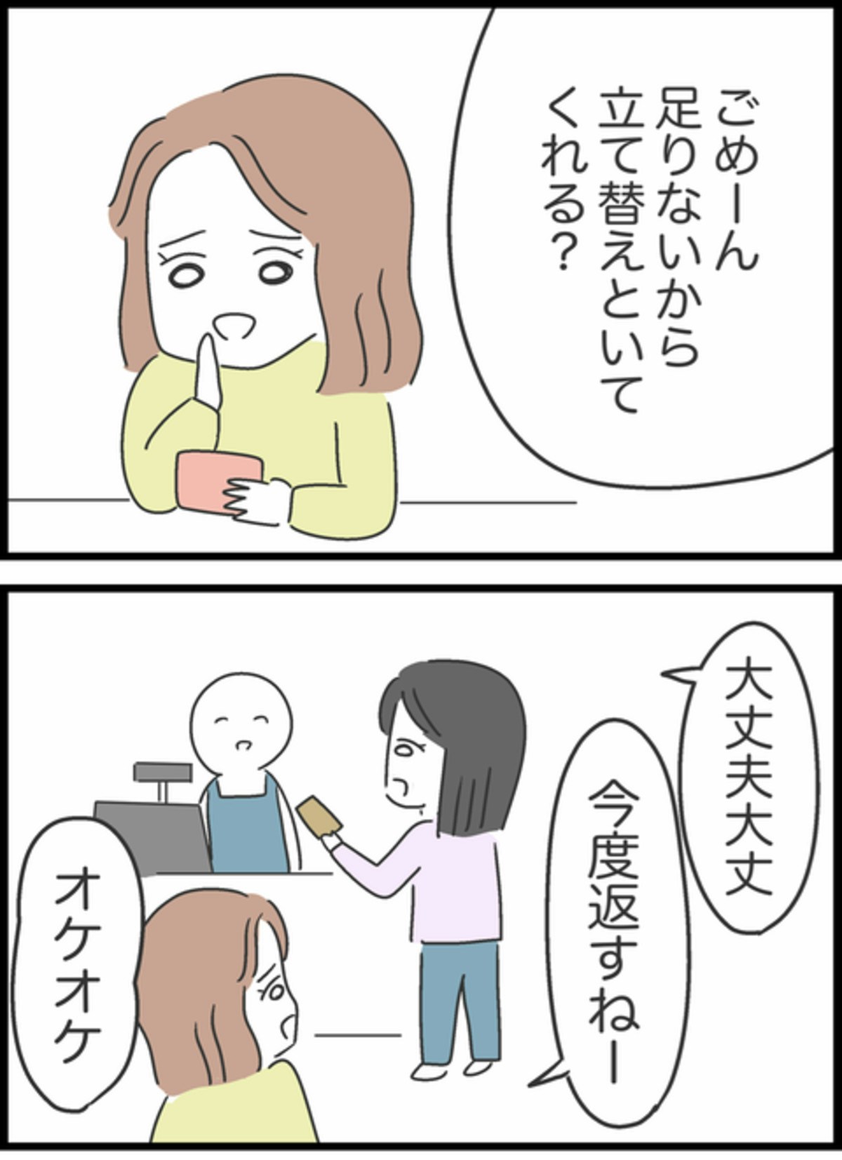 閉店時間となり会計を済ませる際、りかは「お金が足りないから立て替えてほしい」と頼みます。すみれは快く応じ、りかの分も支払いました。「今度返す」という言葉を疑う様子もありません。