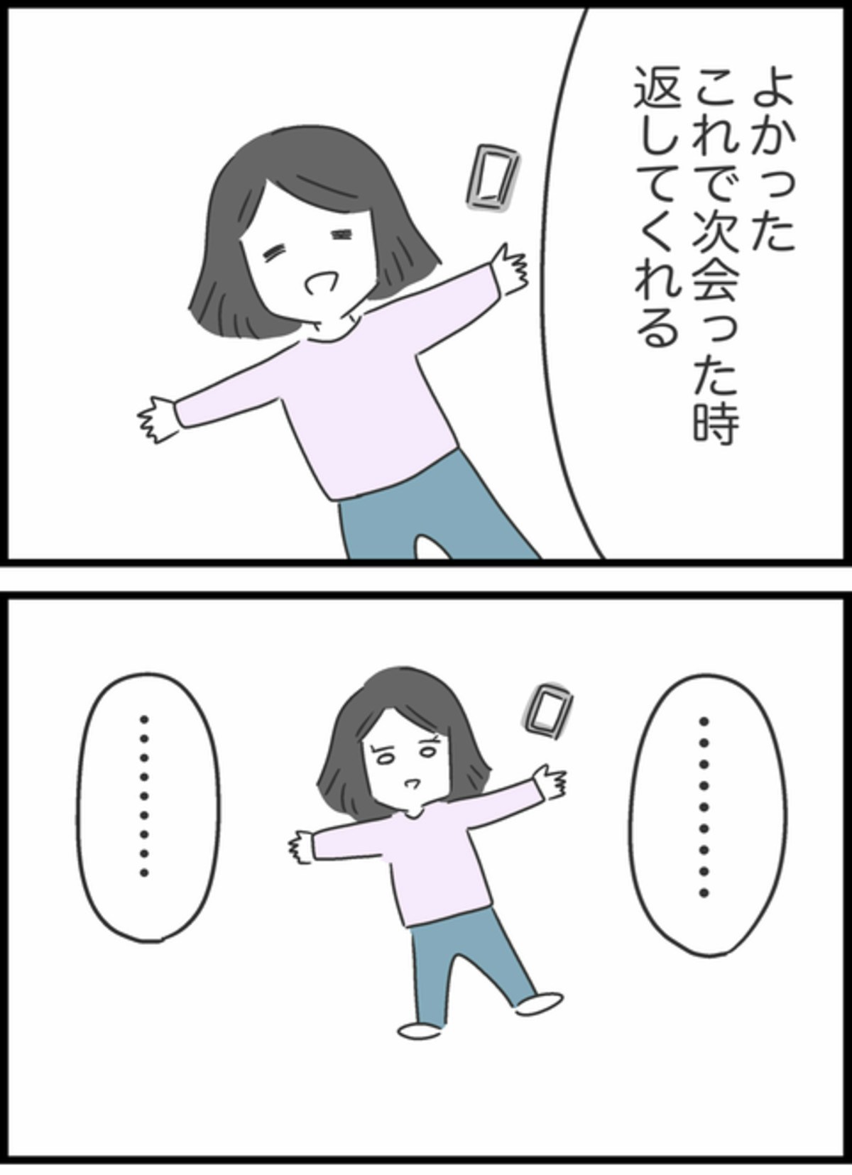 その後、服は返却されましたが最後まで謝罪はありませんでした。すみれは「もう貸し借りはしない」と決意。人との距離感を見つめ直すきっかけになるお話です。