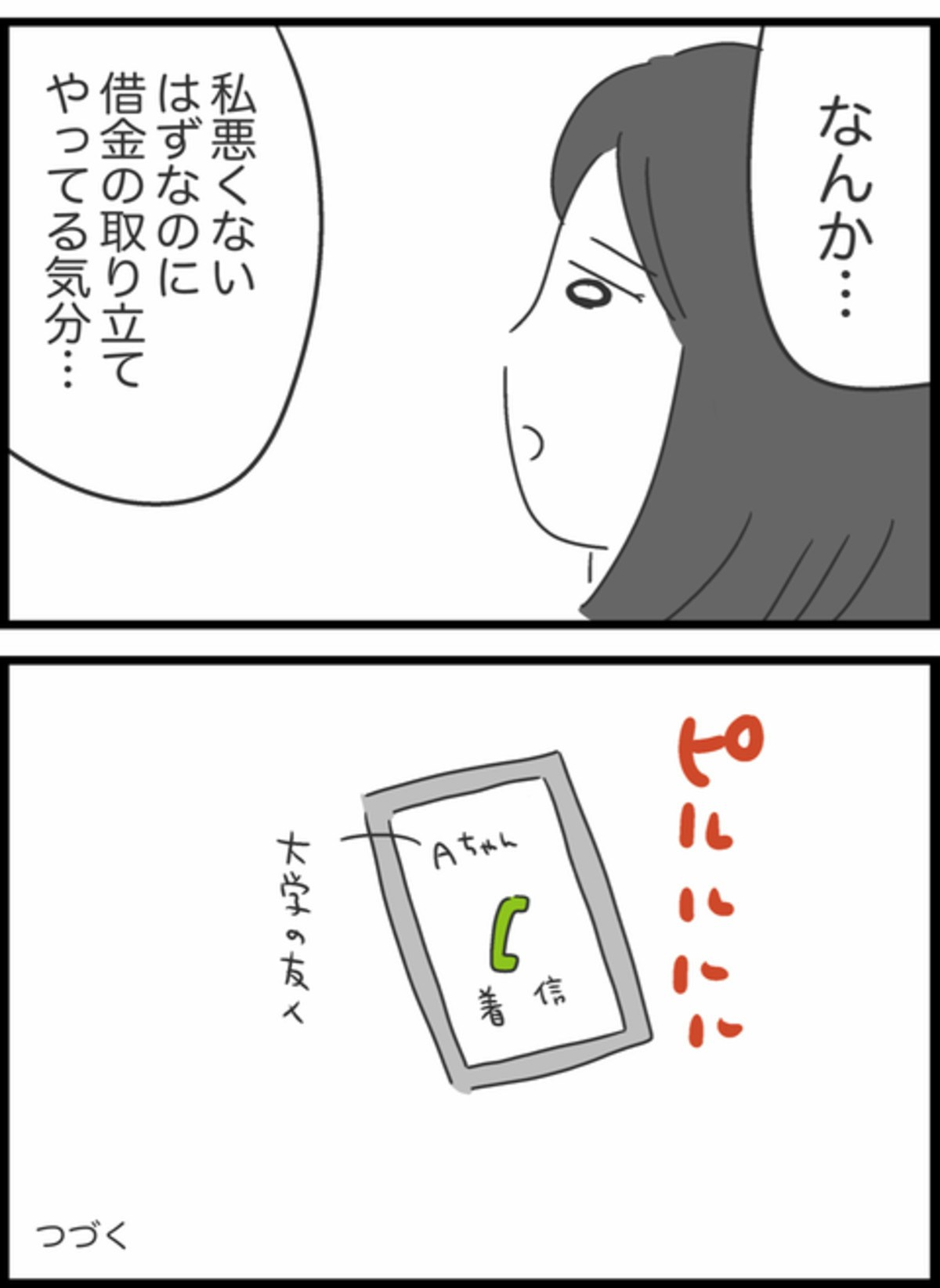 次に会ったときにはお金が返ってくるとホッとしたすみれでしたが、その一方で次の約束を決めておかなければと考えます。残念ながらりかは忙しいようですぐに会うことは難しいとのこと。すみれは仕方ないと割り切り、りかからの連絡を待つことにします。貸したお金を返してもらうだけなのに、すみれは取り立てをしているような気持ちになってしまいます。