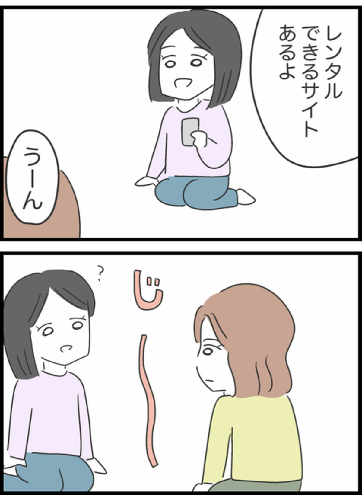 りかの「貸して!」という言葉に驚き何も言えないすみれ。まさか貸してほしいと言われるとは想像もしていなかったでしょうね。りかは服を着る予定があるかまで確認したうえで「じゃあ貸して」と借りられる前提で話をしてきていますね。お金のことでりかに対してモヤモヤしたばかりなのに、すみれはまた貸してしまうのでしょうか。