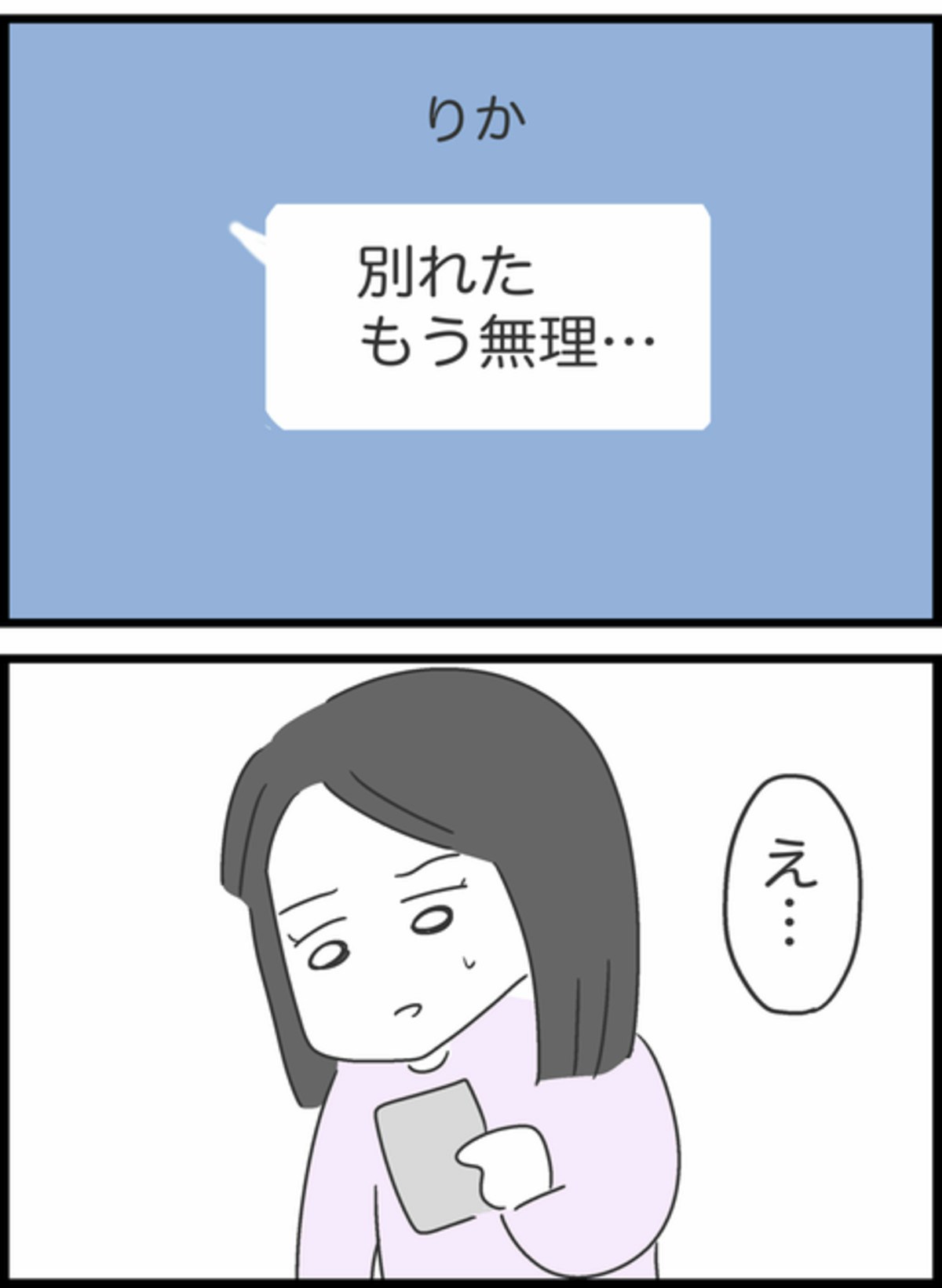 1人で不安になっていても仕方ないと思ったすみれはりかにメールを送ることに。しかし、りかからの返信は「別れた」というものでした。まさかの展開にすみれも戸惑っている様子ですね。りかのことはもちろん心配ですが、貸したものはどうなったのでしょうか…。