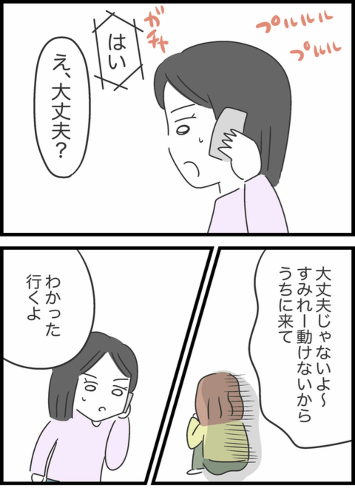 1人で悶々と考えていても仕方ないと開き直ったすみれはりかにメールをしてみることに。すぐに返事が来ますがメールには「別れた」と書かれており、すみれは慌てて電話をかけます。落ち込んでいる様子のりかに「うちに来て」と言われ、すぐにりかの家へと向かいます。