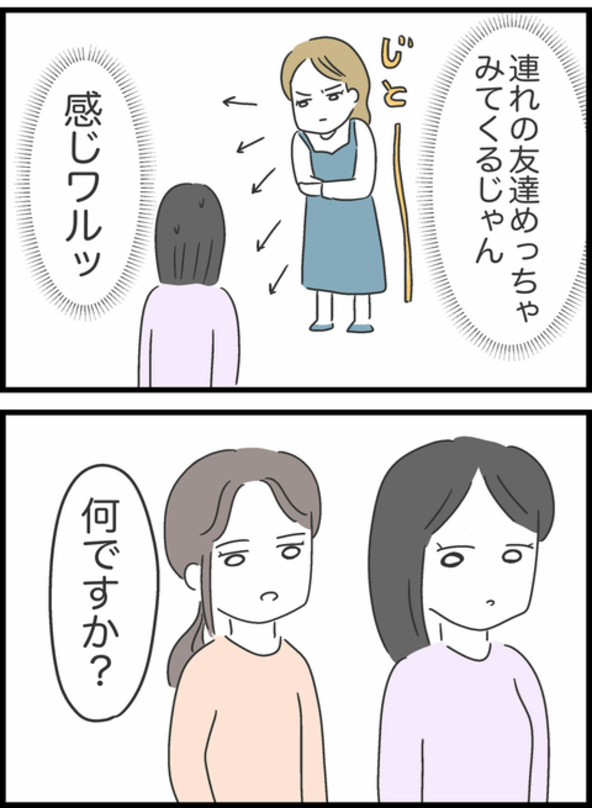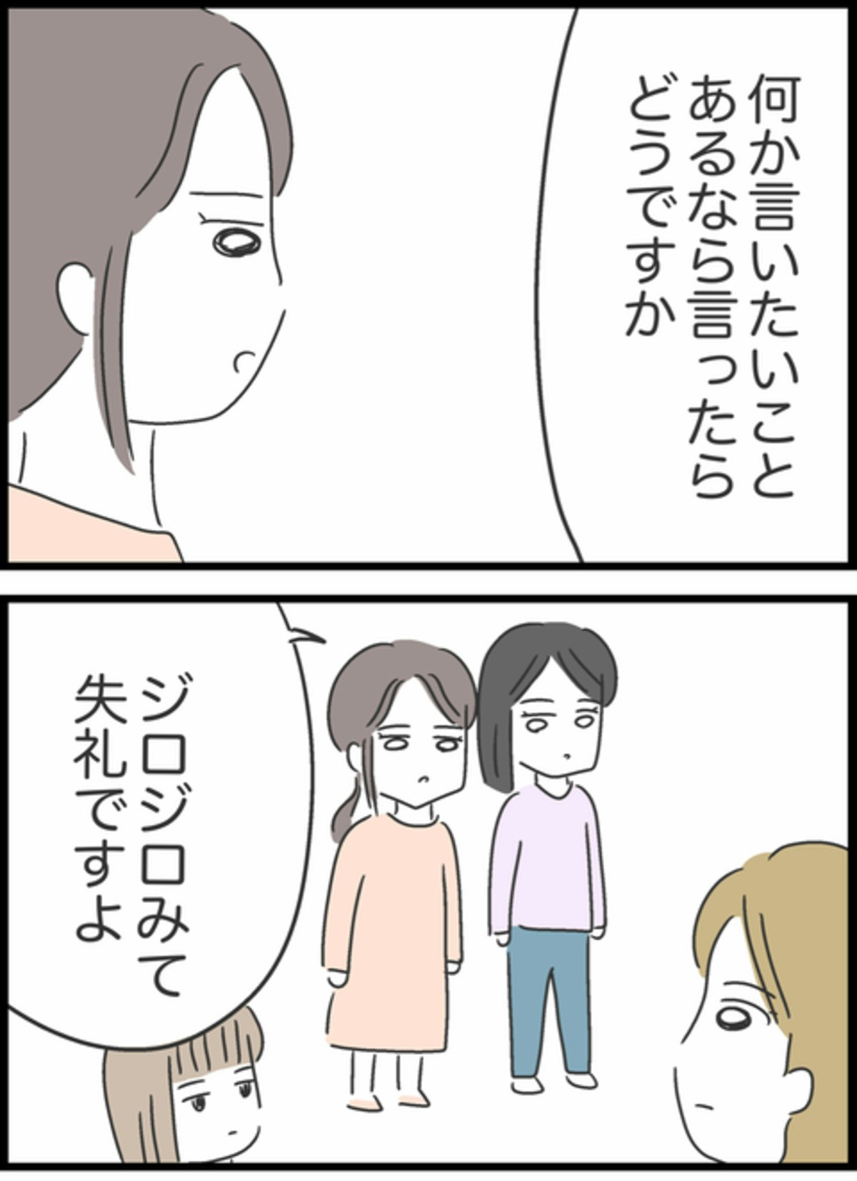 そして、りかの隣ですみれのことを見ていた友達は初対面なのにジロジロとすみれのことを見て何なのでしょうか。戸惑うりかに代わってAちゃんが「何ですか?」と口を開きます。