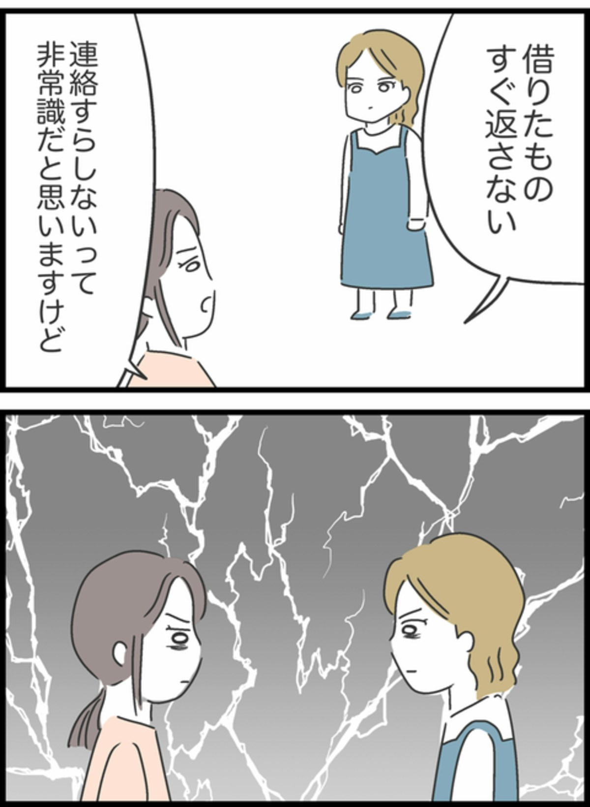 その後、服は返却されましたが最後まで謝罪はありませんでした。すみれは「もう貸し借りはしない」と決意。人との距離感を見つめ直すきっかけになるお話です。