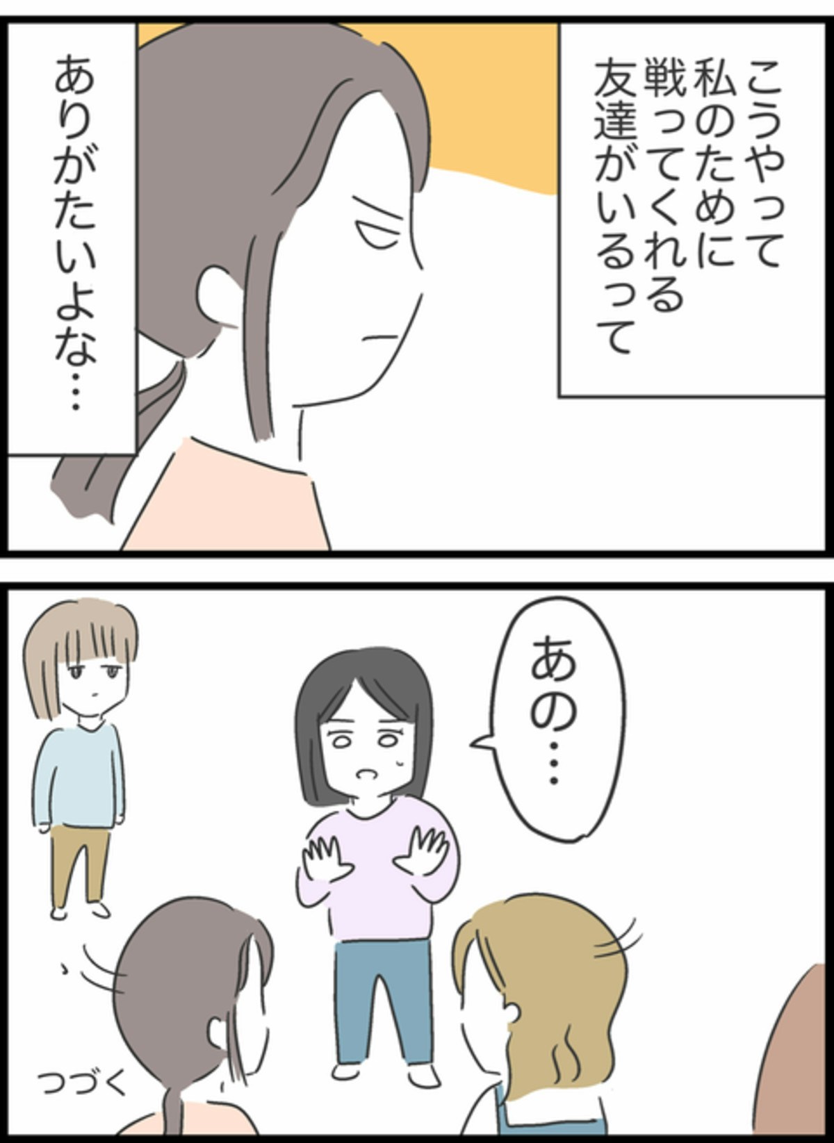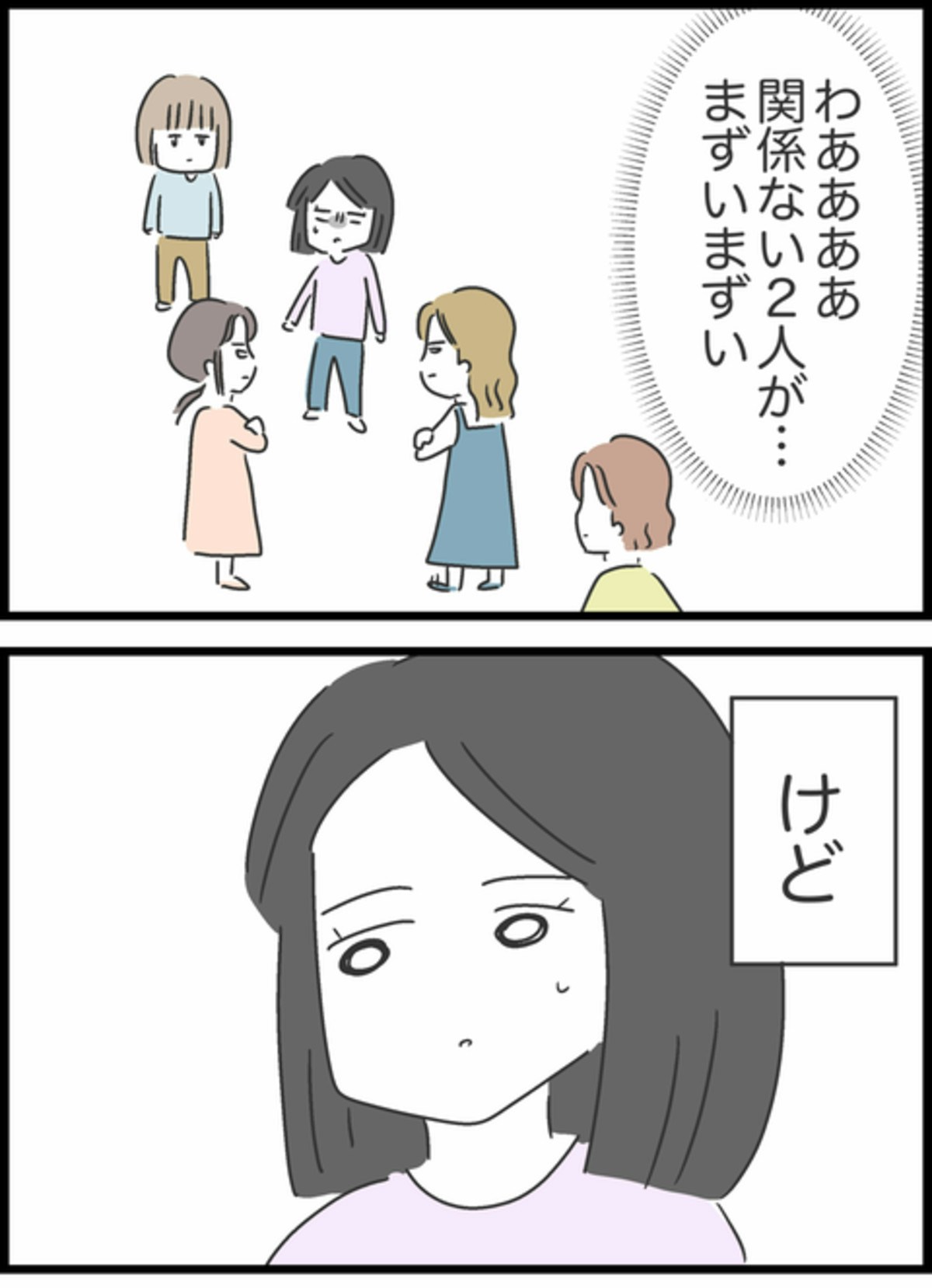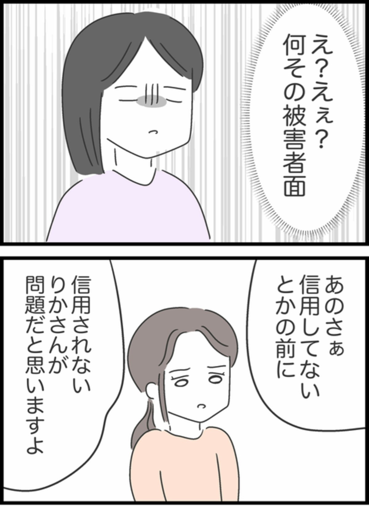 りかは友達に自分に非があったことは伝えず、すみれに問題があるように話していました。それを知り、かなりの衝撃を受けたすみれ。Aちゃんはすかさず「信用されないりかさんに問題がある」とりかに問題があったことを伝えます。Aちゃんとりかの友達は一触即発のような空気に…。すみれはその状況をマズイと感じながらも、自分のためにここまで言ってくれるAちゃんに感謝していたのでした。