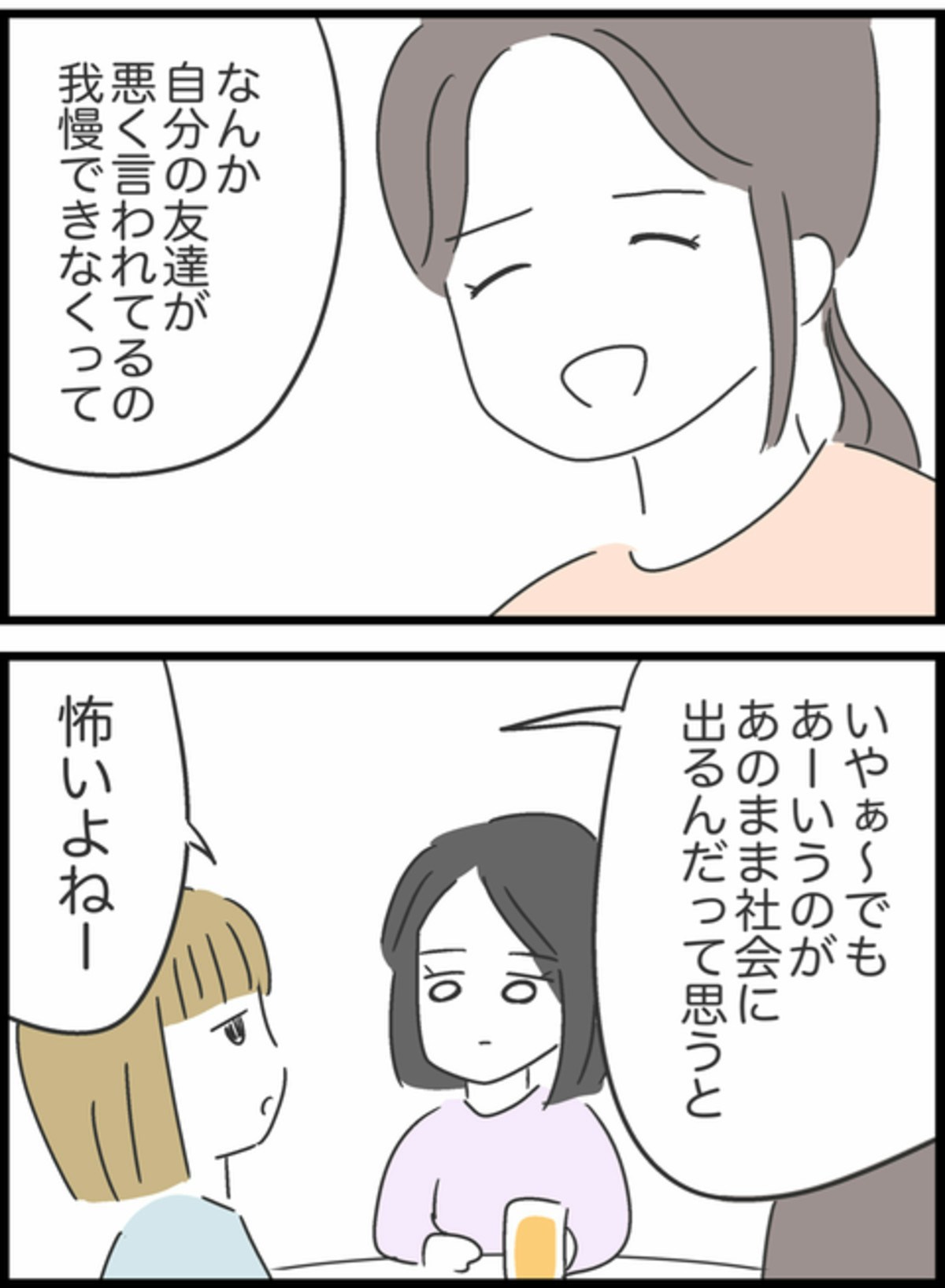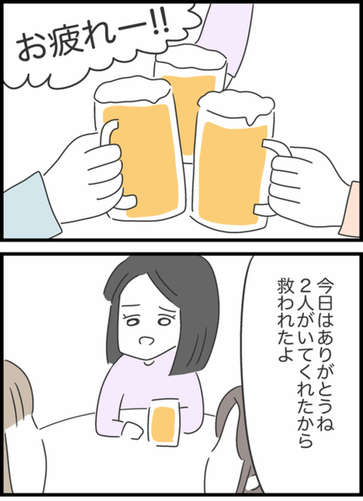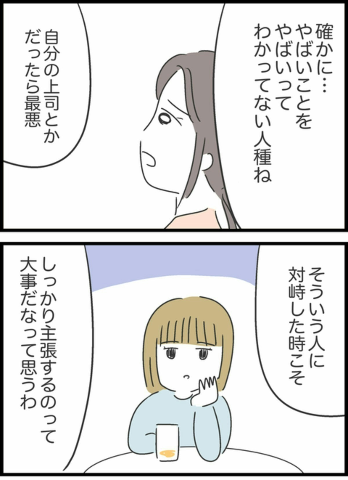 お酒を飲みながら今日のできごとを振り返っていた3人。すみれは2人に感謝し救われたと話します。Aちゃん、Bちゃんもそれぞれに感じたことがあったようです。そして3人はやばい相手こそ、こちらの主張をしっかりとしなければいけないという結論に至ります。