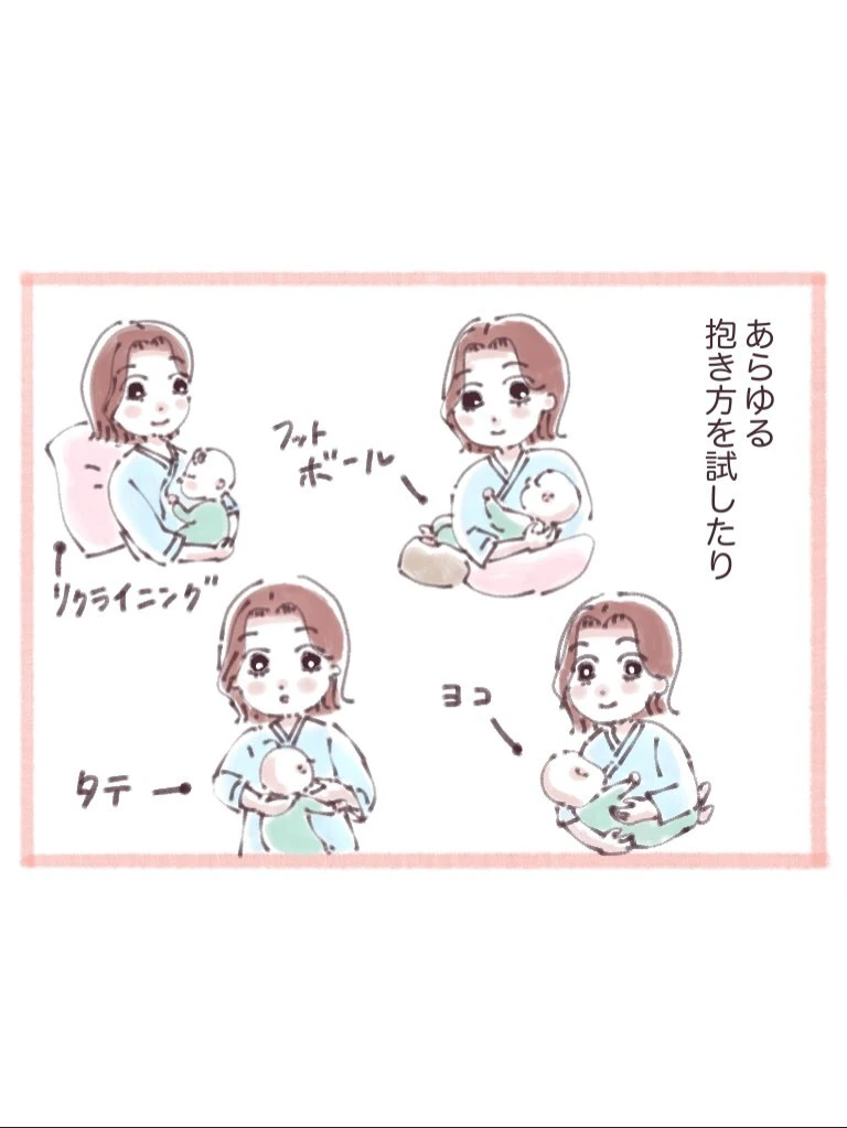 あらゆる抱き方や乳頭保護器を試してみます。