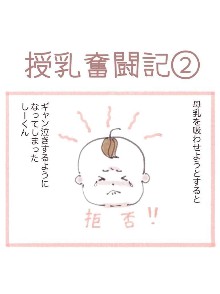 息子・しーくんは母乳をしぶり、ギャン泣きするようになってしまいました。助産師さんとともに、なんとか母乳を吸ってもらえるよう、奮闘します。