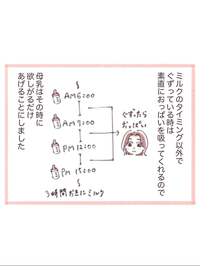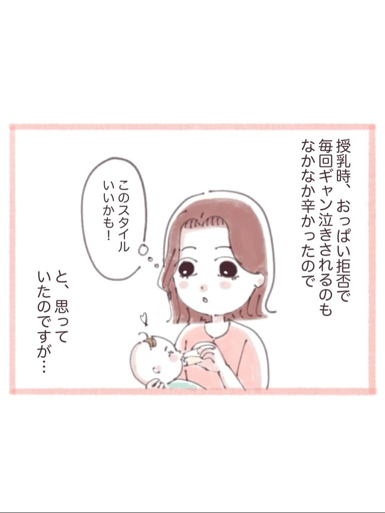 すると、ミルクのタイミング以外では、母乳を拒否されることはありませんでした。しーくんはすでに「食事=ミルク」だと感じているのかもしれませんね。ミルクが欲しくて泣く赤ちゃんと、母乳を拒否されて傷つくママの両方が納得できる、ベストな方法に思えますが…。